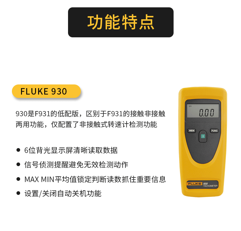 福禄克FLUKE F930手持式转速计F931 转速表 光学测量仪器仪器 F930 非接触式