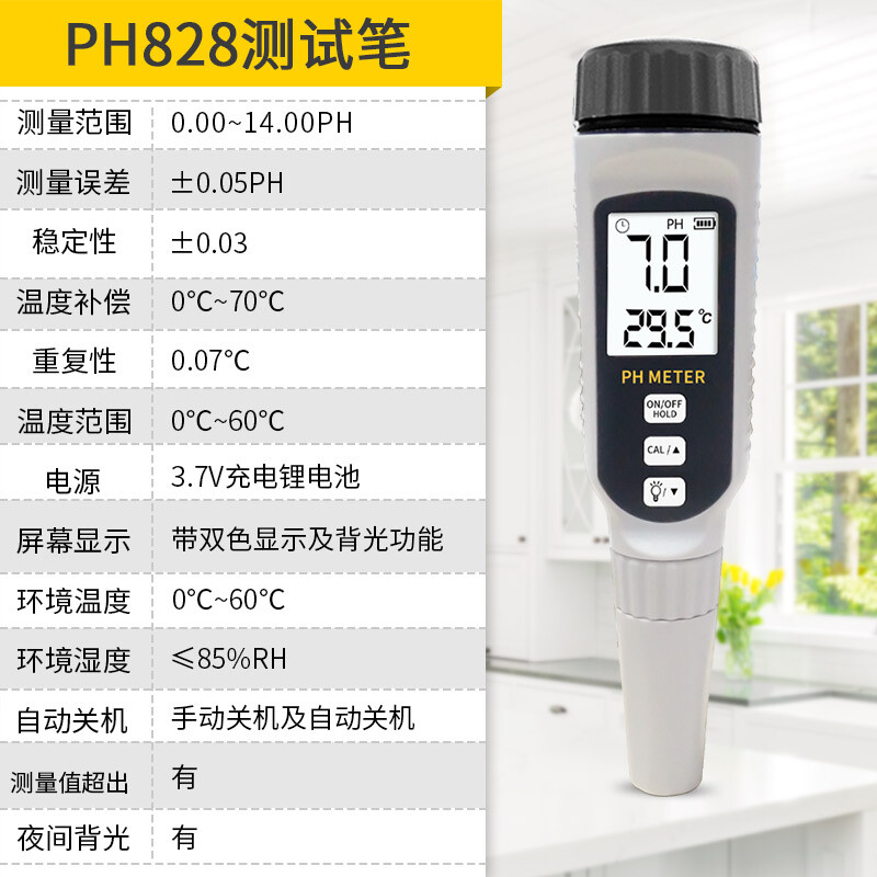 希玛酸碱度水质检测笔测试仪笔数显高精度ph计工业自来水饮用水质检测仪 PH828充电款