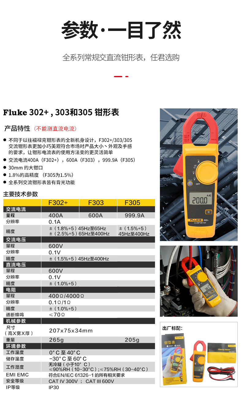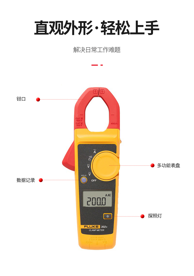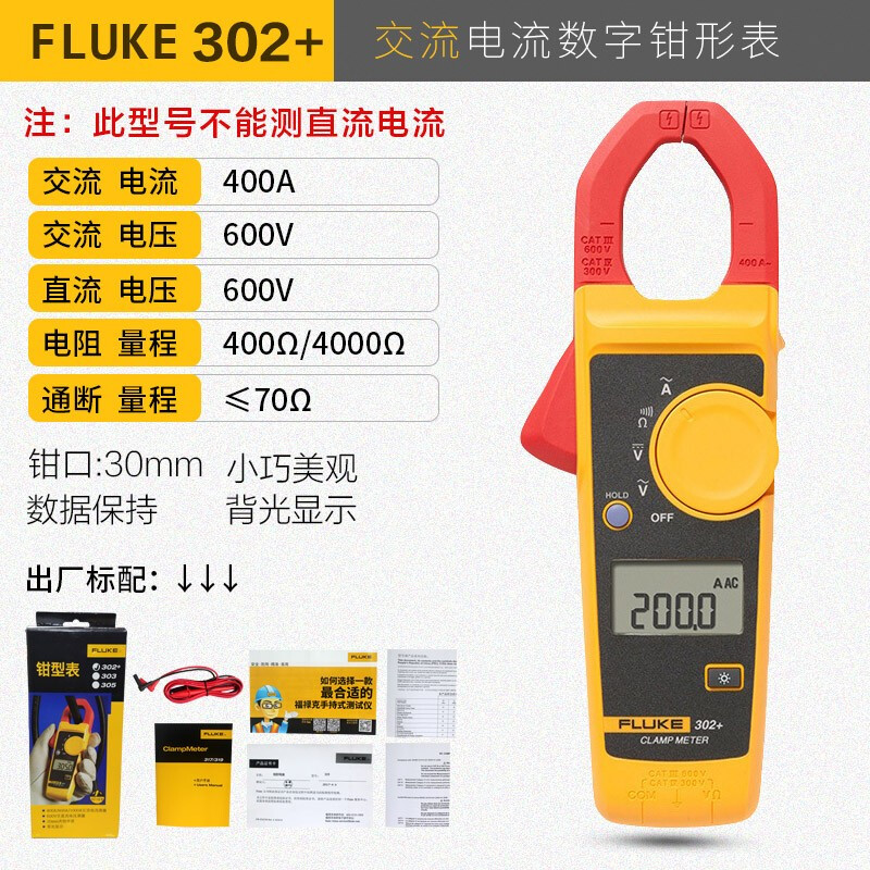 福禄克(FLUKE)F302+ F303 F305 钳形万用表高精度数字交流电流钳表 F302+ 【测交流电流400A】