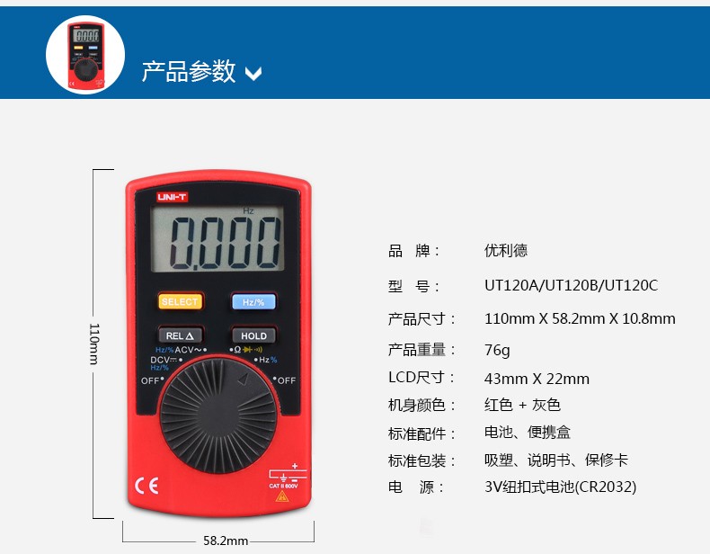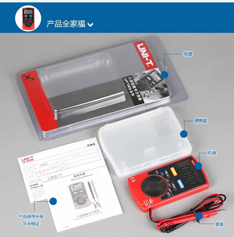 【官方直销】优利德UT120A/120B/120C迷你型袖珍数字万用表自动量程数显万能表 UT120C