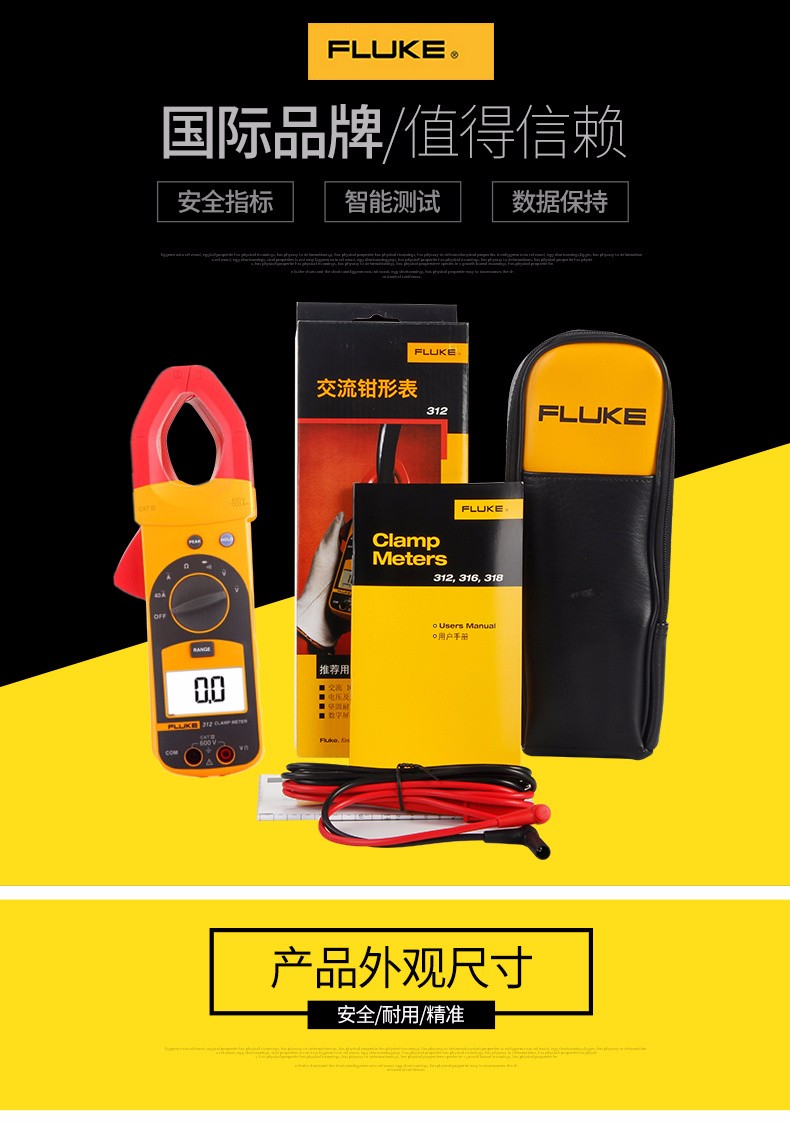 FLUKE福禄克钳形表钳形电流表钳形万用表高精度钳型万能表 FLUKE302+ 交流400A