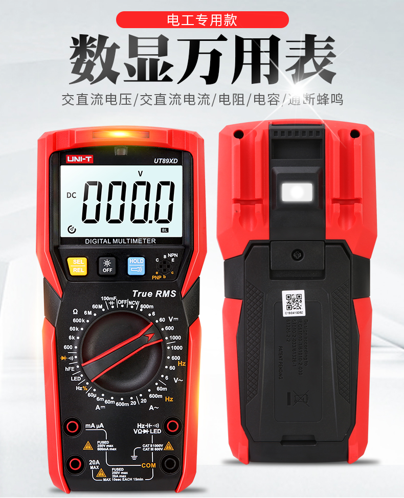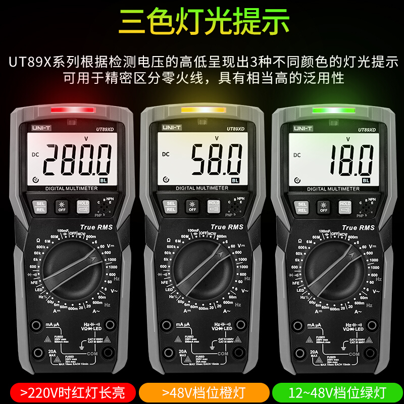 优利德 数字万用表 万能表全保护电工防烧数显多用电表 UT89X 电流表万能表 仪器仪表掌上型多用表 UT-89XD(LED测量+NCV测量)