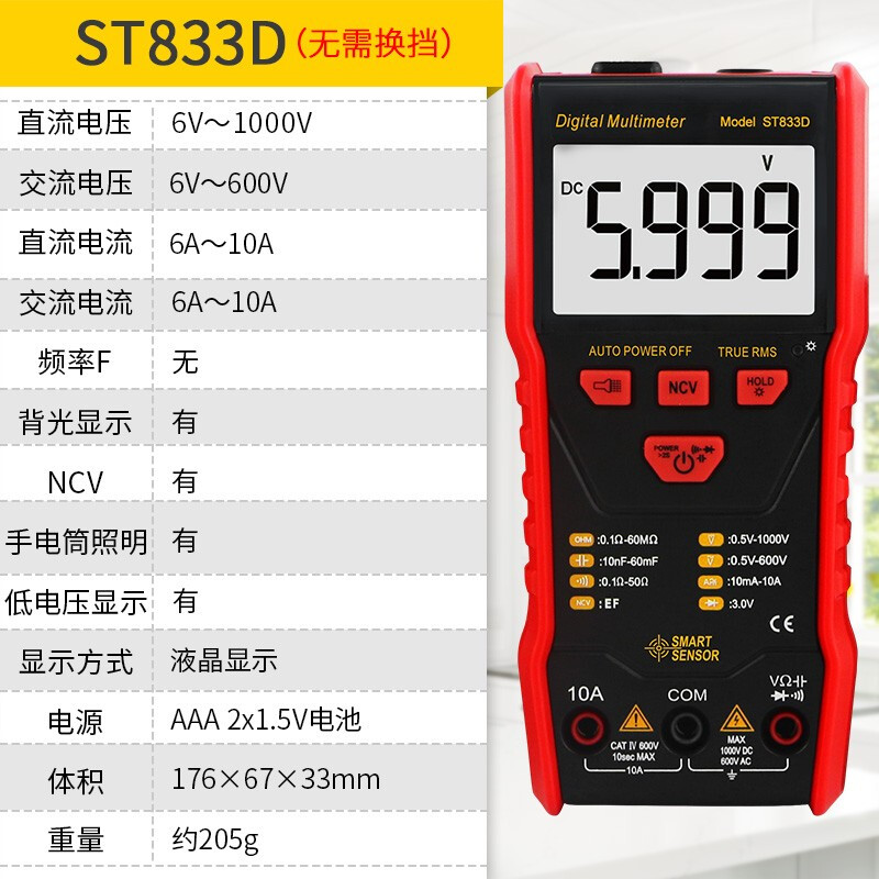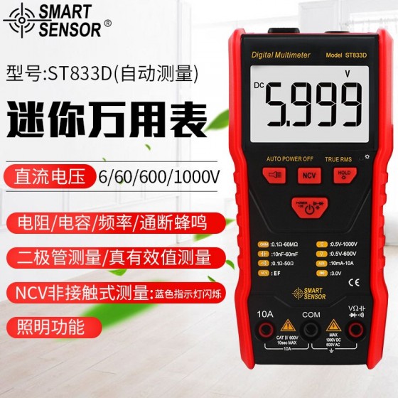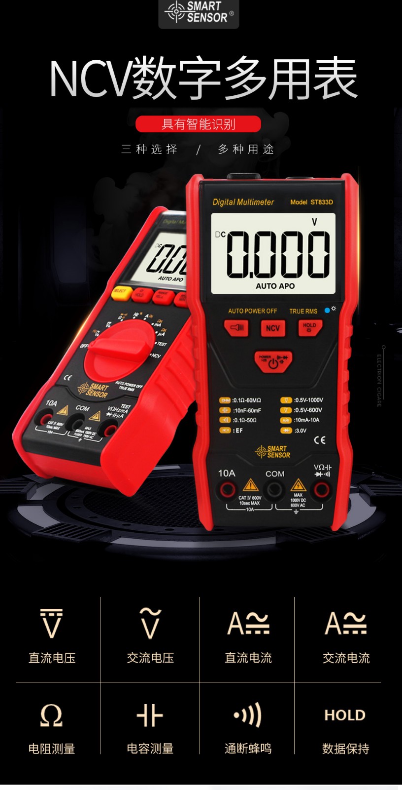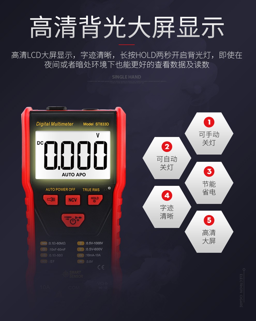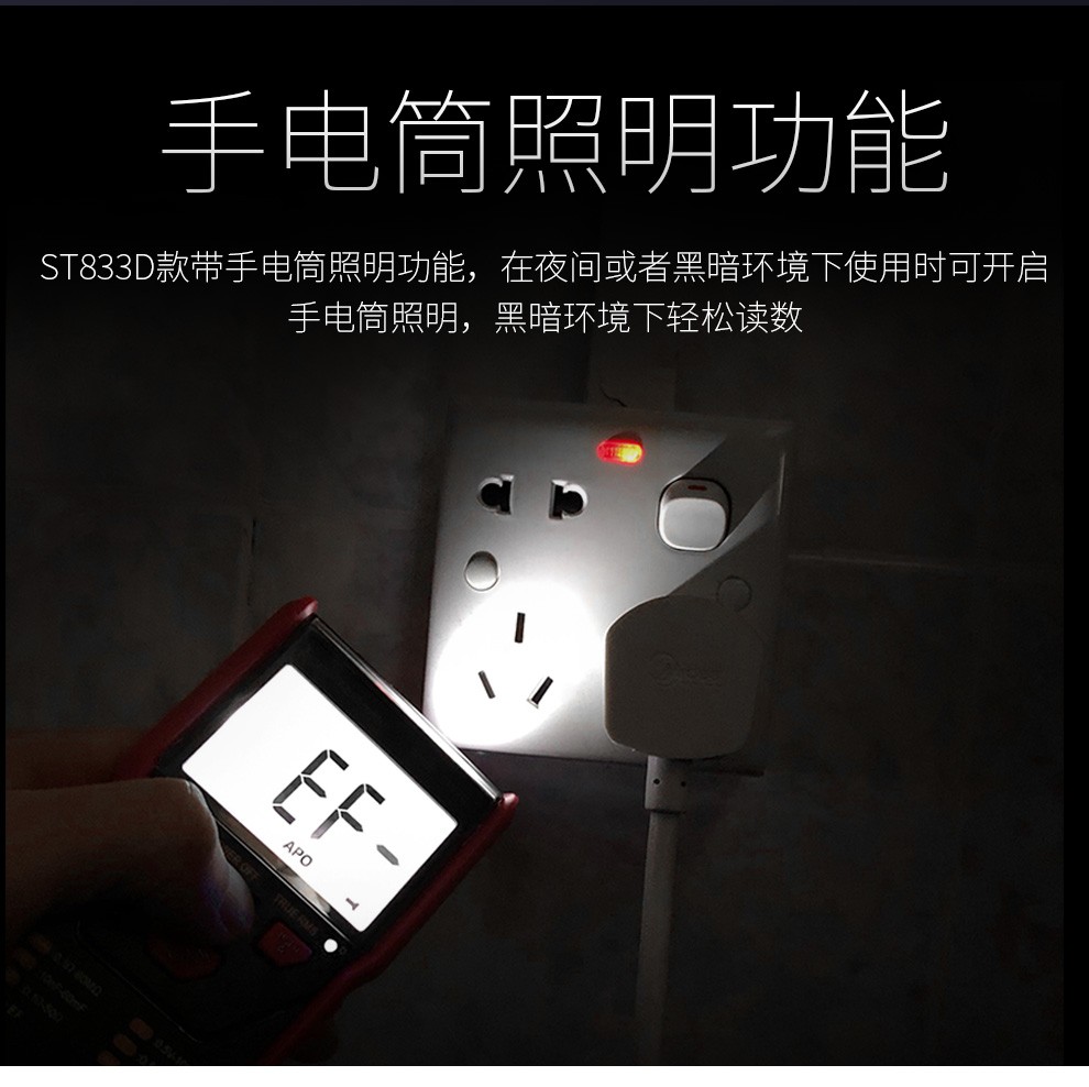 希玛万用表 数字万用表 零火线测量 电容/电阻/频率/通断测量 ST833D 照明功能