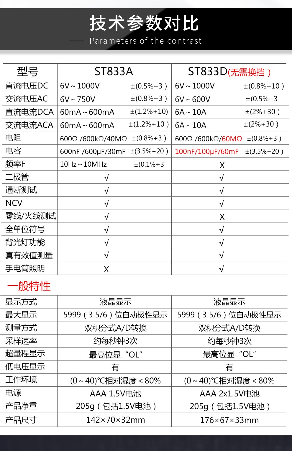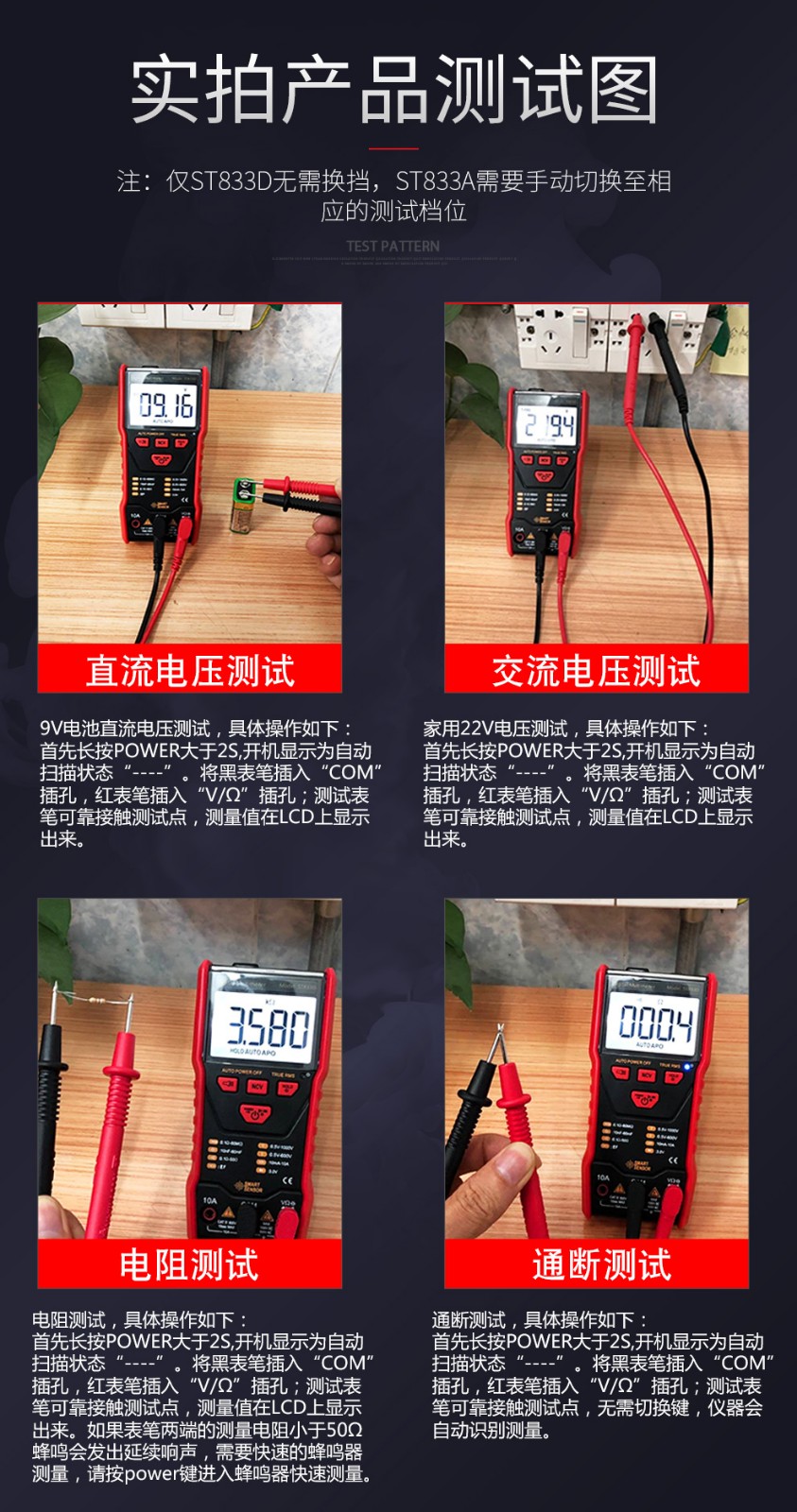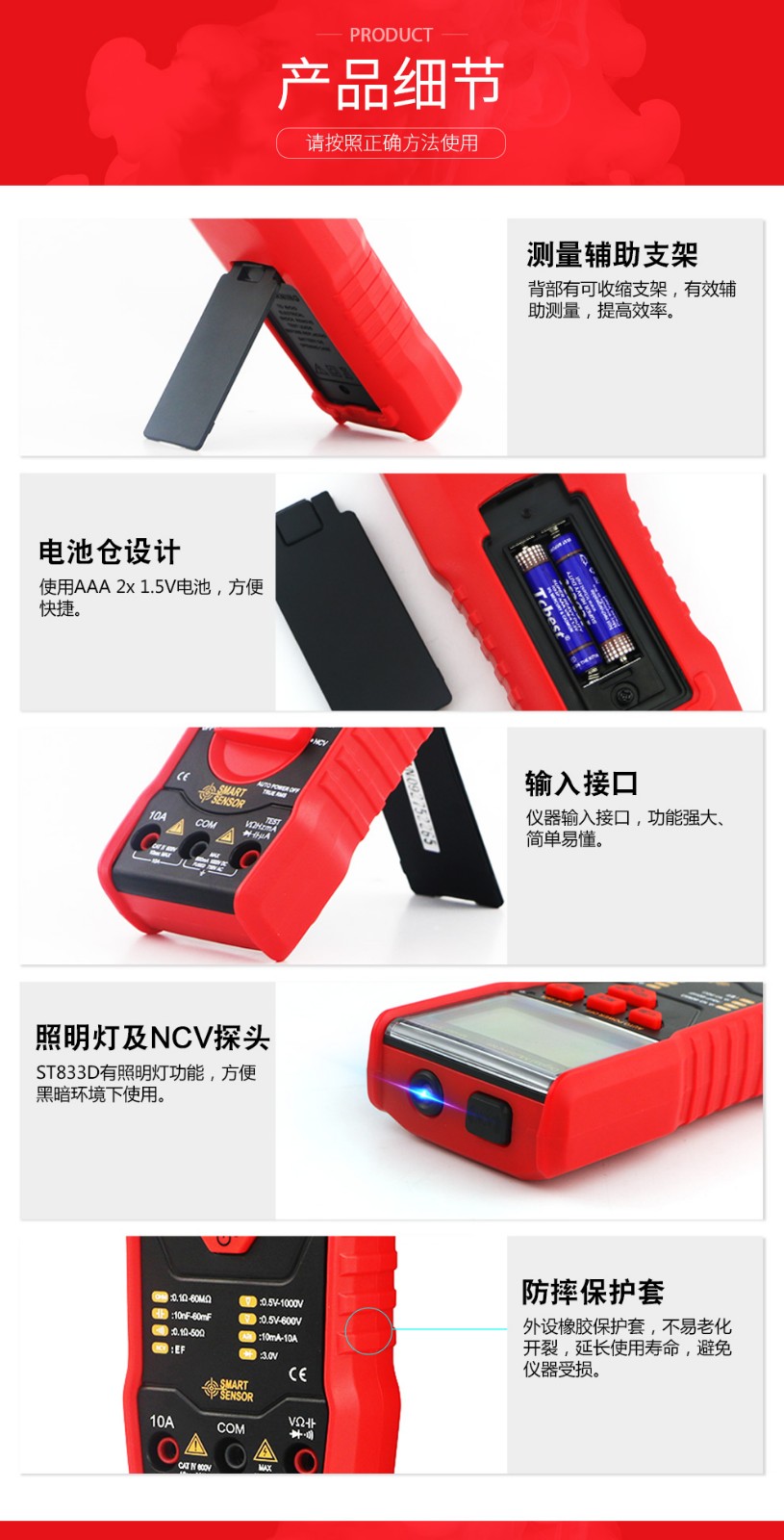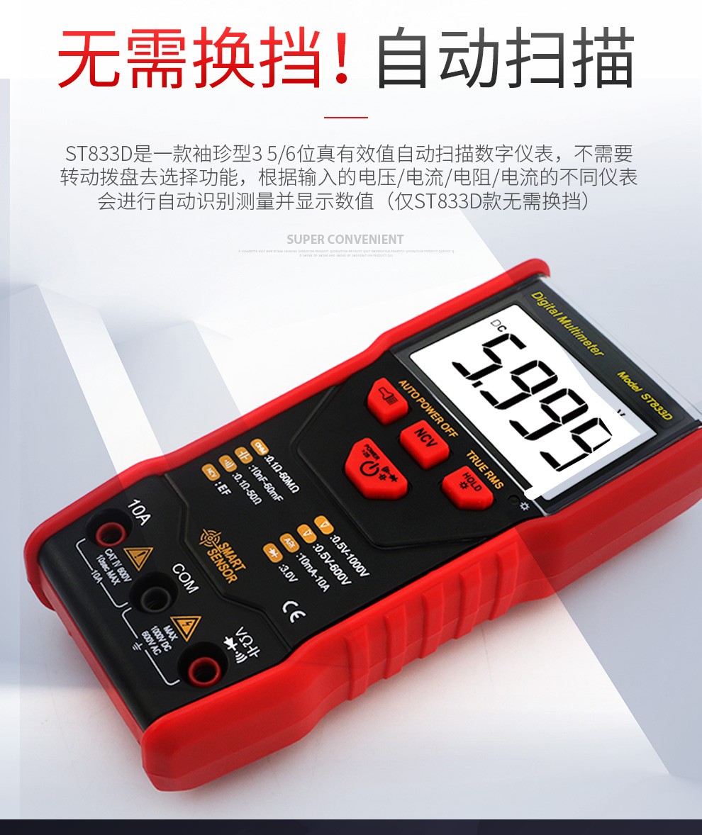 希玛万用表 数字万用表 零火线测量 电容/电阻/频率/通断测量 ST833D 照明功能