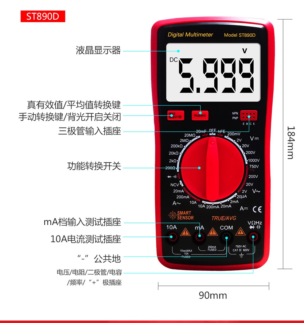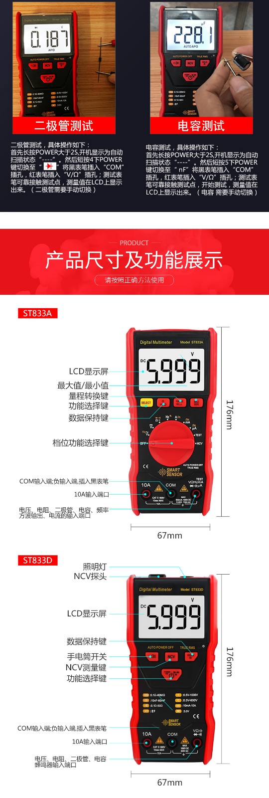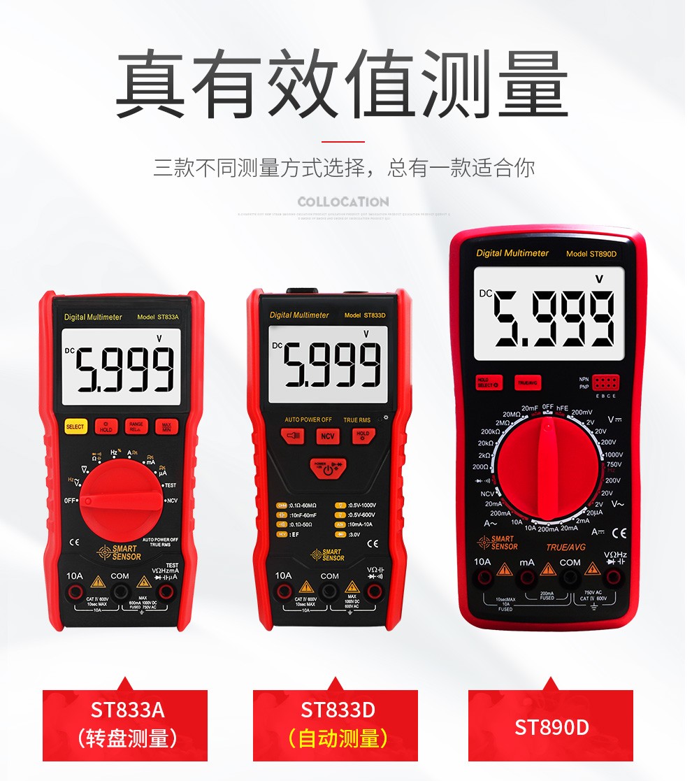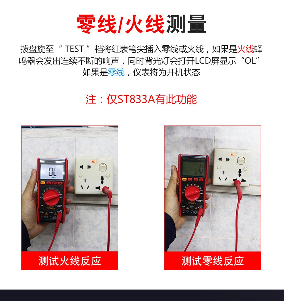 希玛万用表 数字万用表 零火线测量 电容/电阻/频率/通断测量 ST833D 照明功能