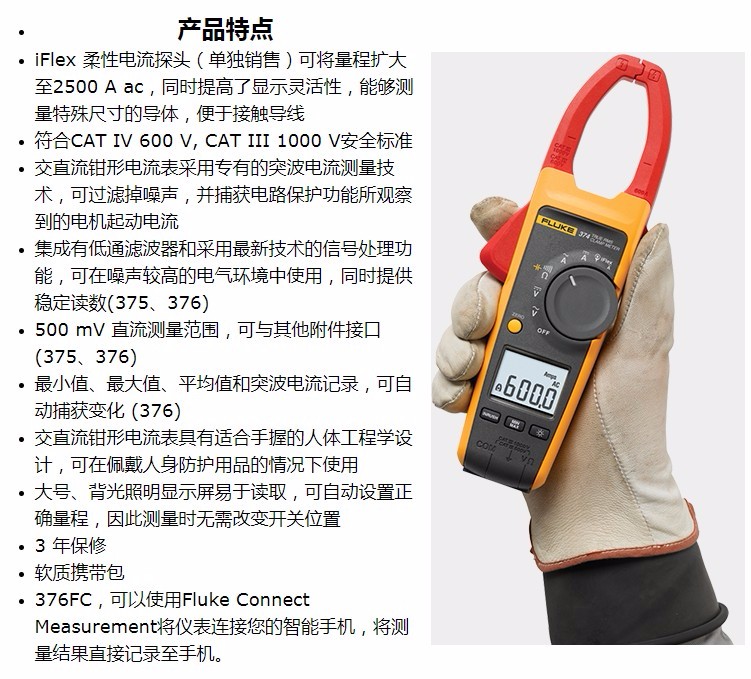 福禄克FLUKE-362系列高精度真有效值钳形表 钳型万能表 F365交直流600V/200A钳头可分离
