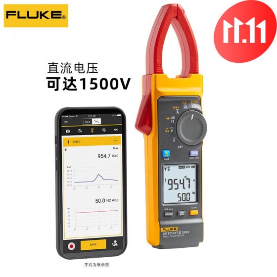 福禄克(FLUKE) 真有效值交直流钳形表 光伏行业直流电压1500V Fluke 393FC
