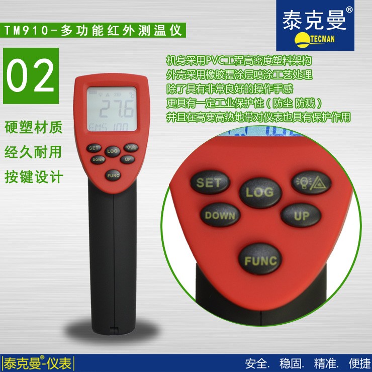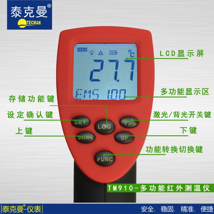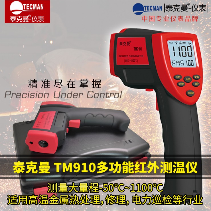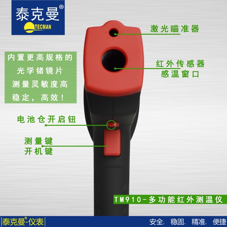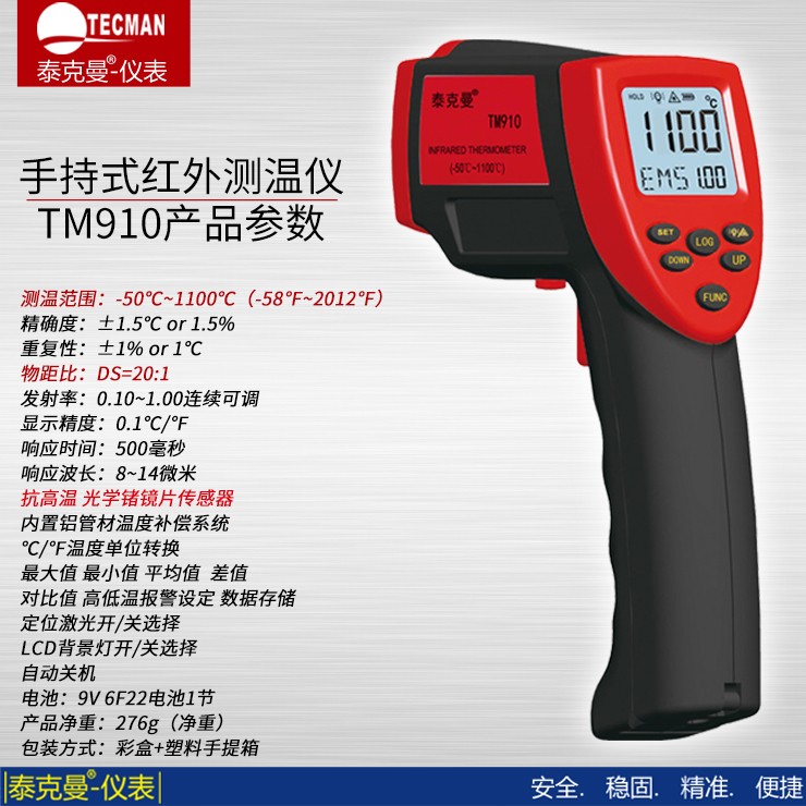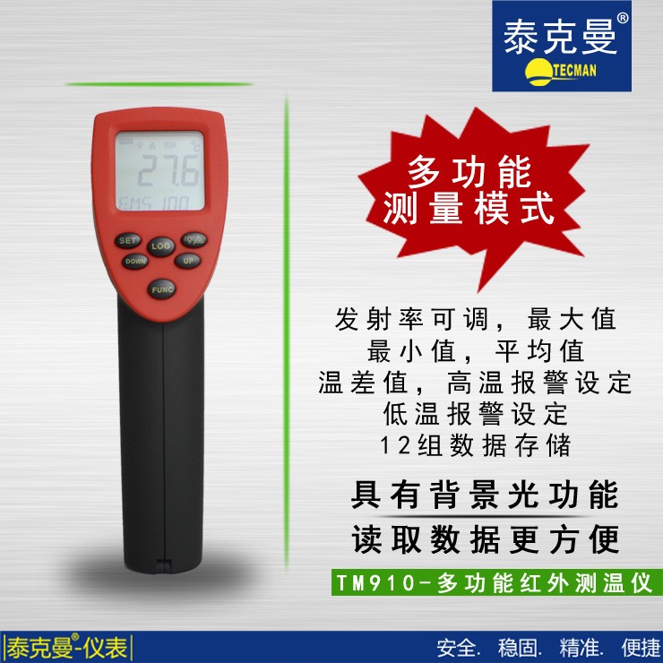 泰克曼高精度高温红外测温仪多功能测温枪测温仪测TM910原装标配