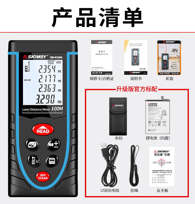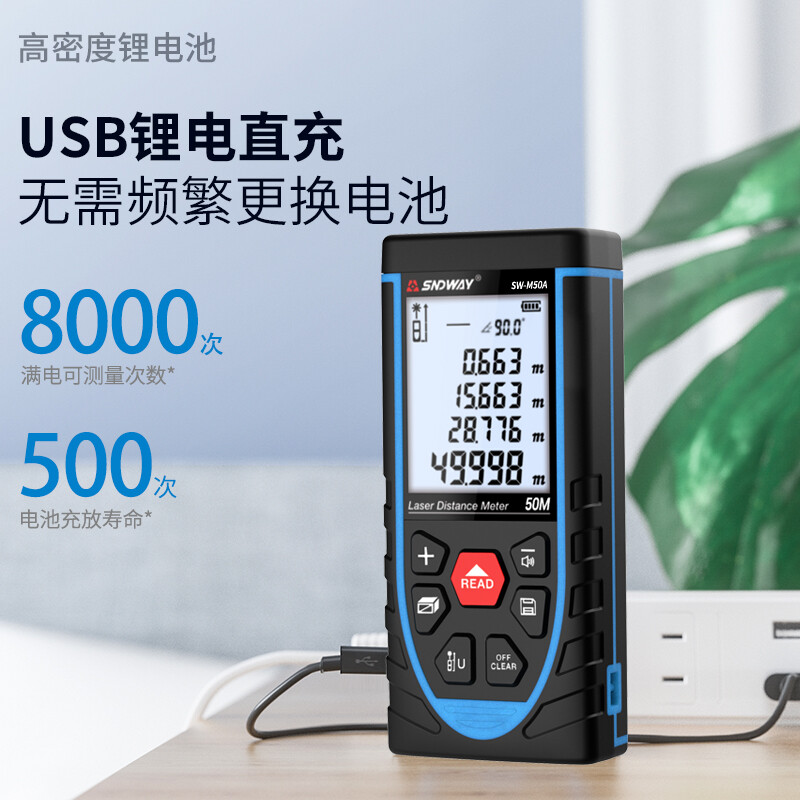 深达威 激光测距仪手持充电式红外线测量仪电子尺 测量工具 室内测距仪 SW-M50A (充电语音款)