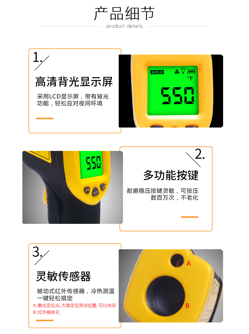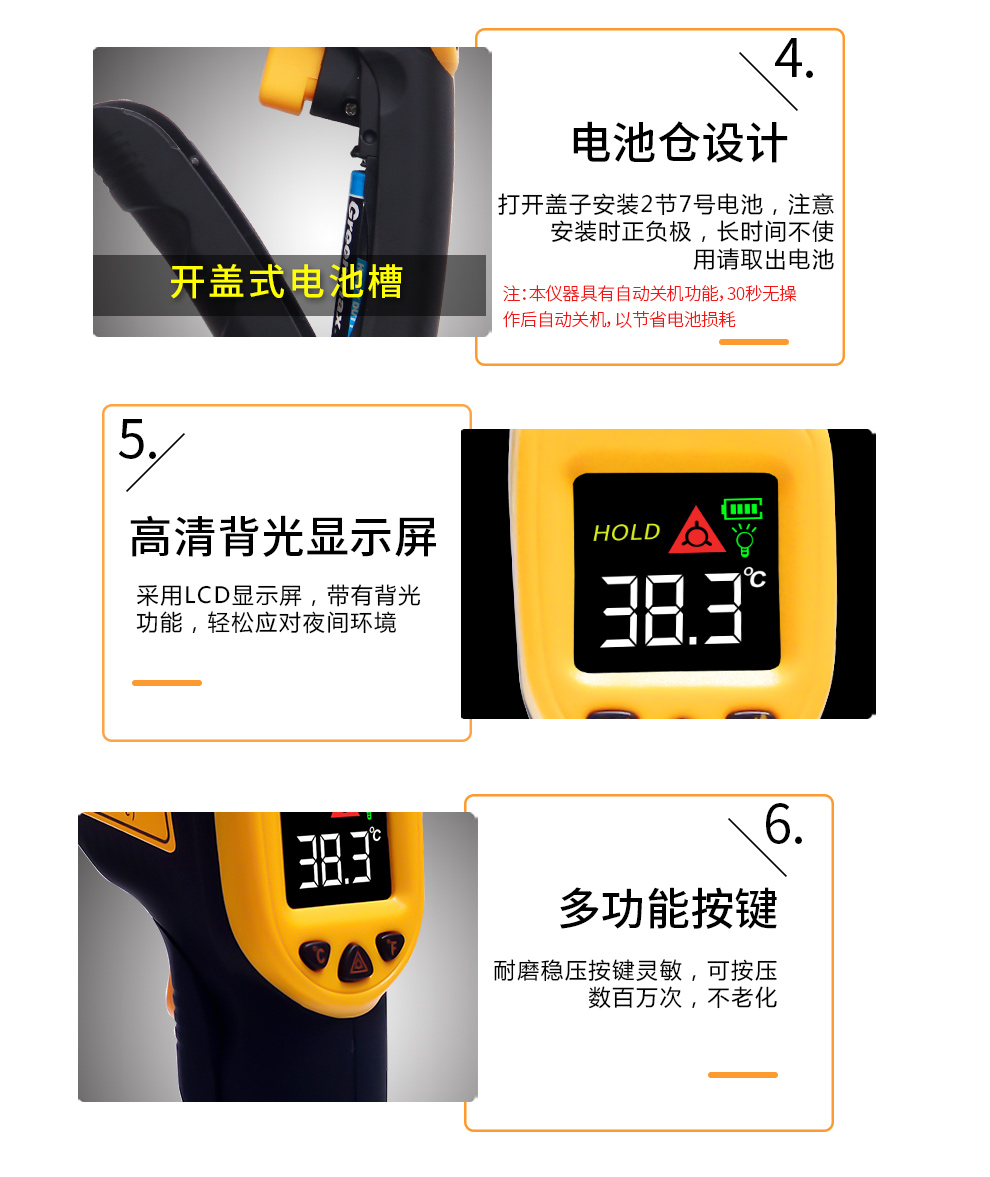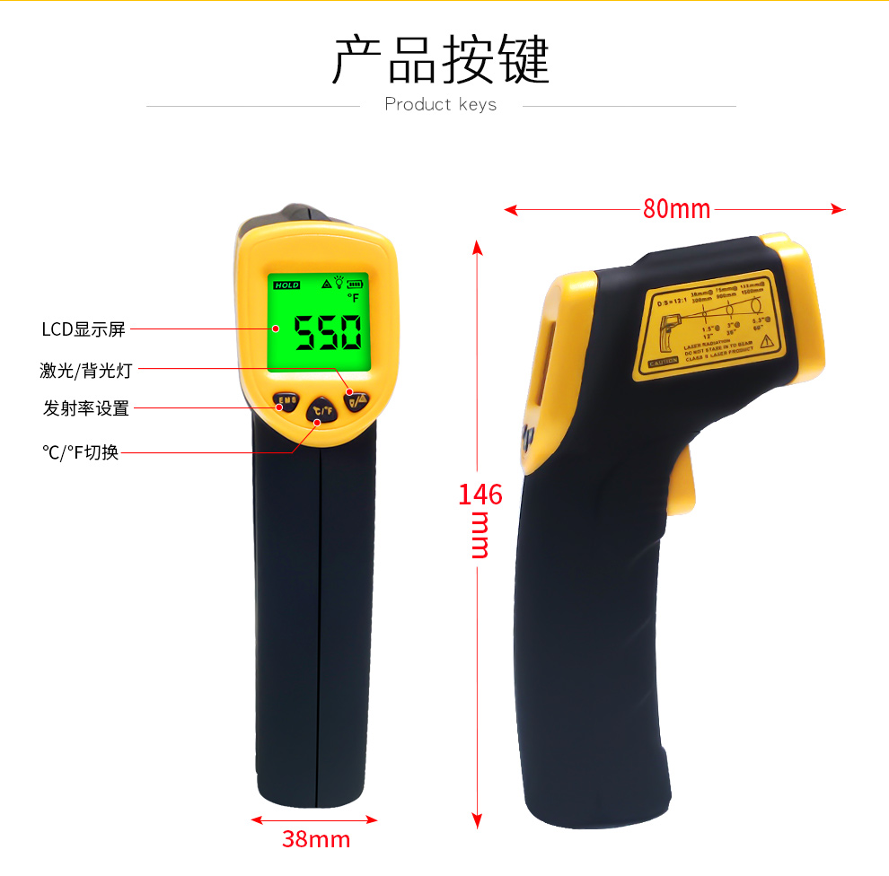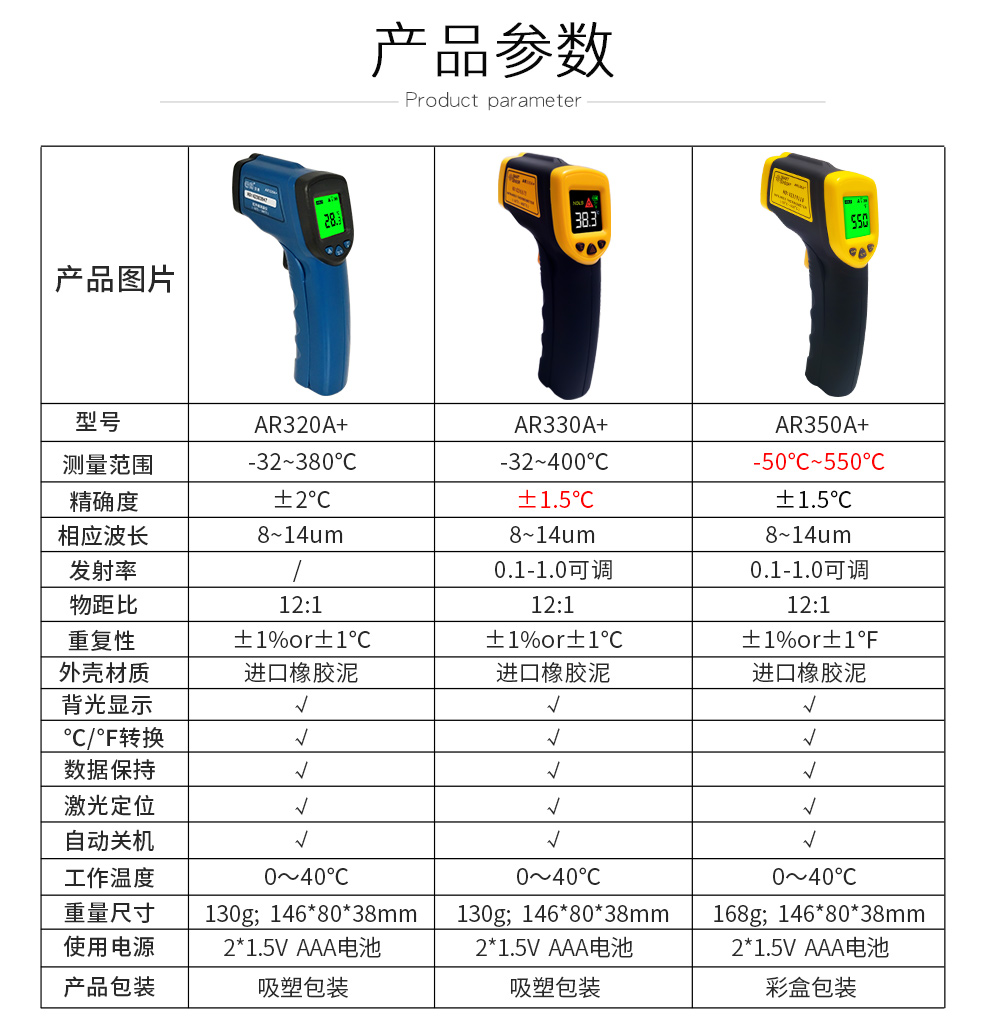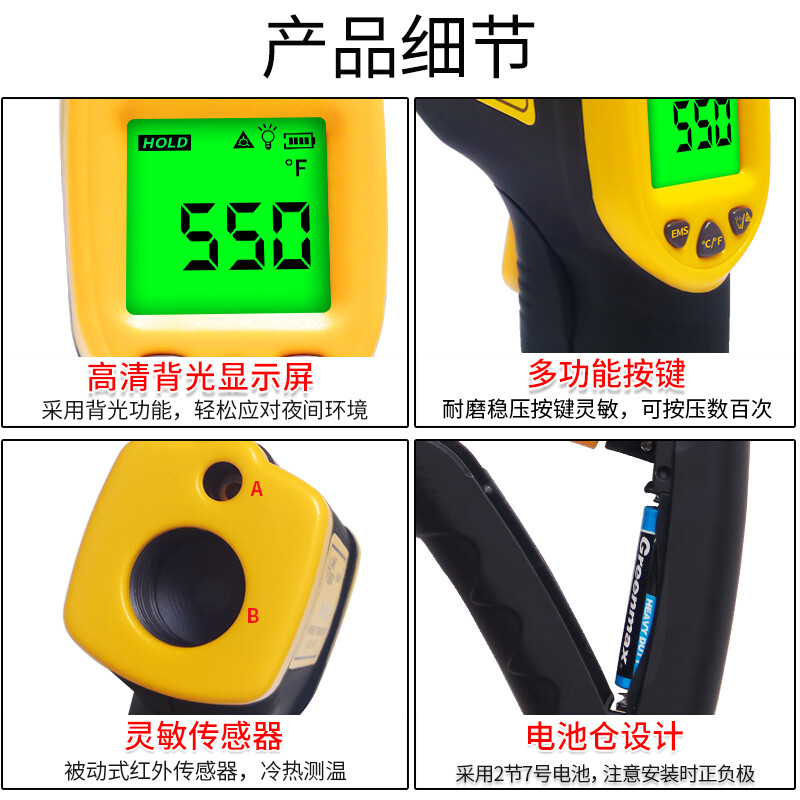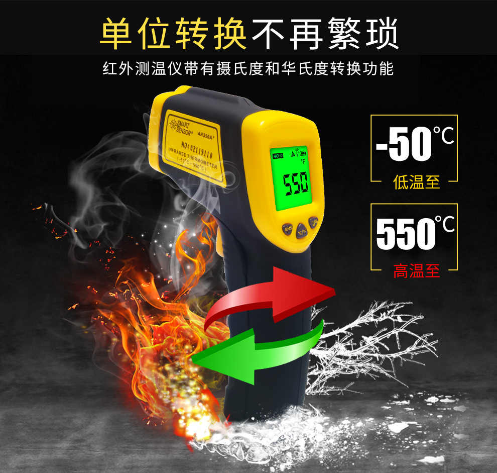 希玛红外线测温仪 测温枪 工业高精度电子温度计 AR350A(量程-50-550度)