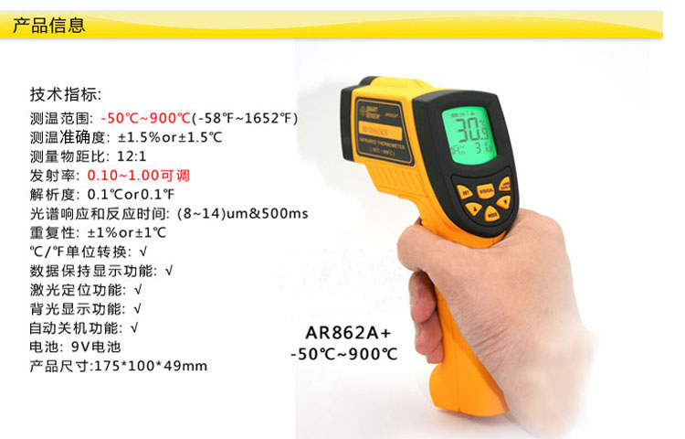 希玛AR862A+测温枪红外线测温仪工业900度非接触