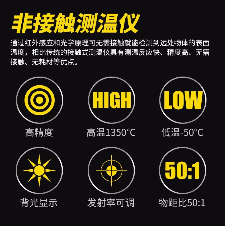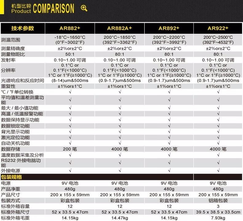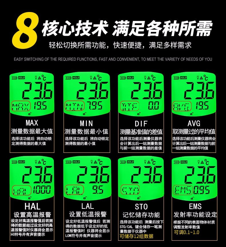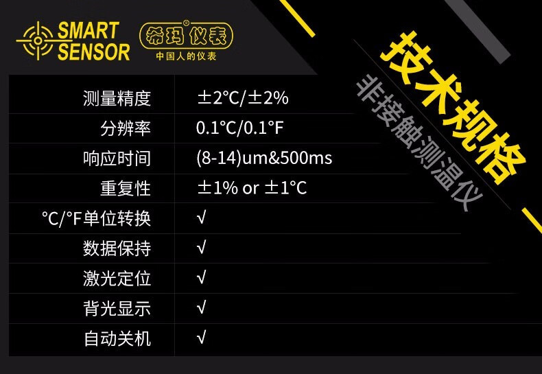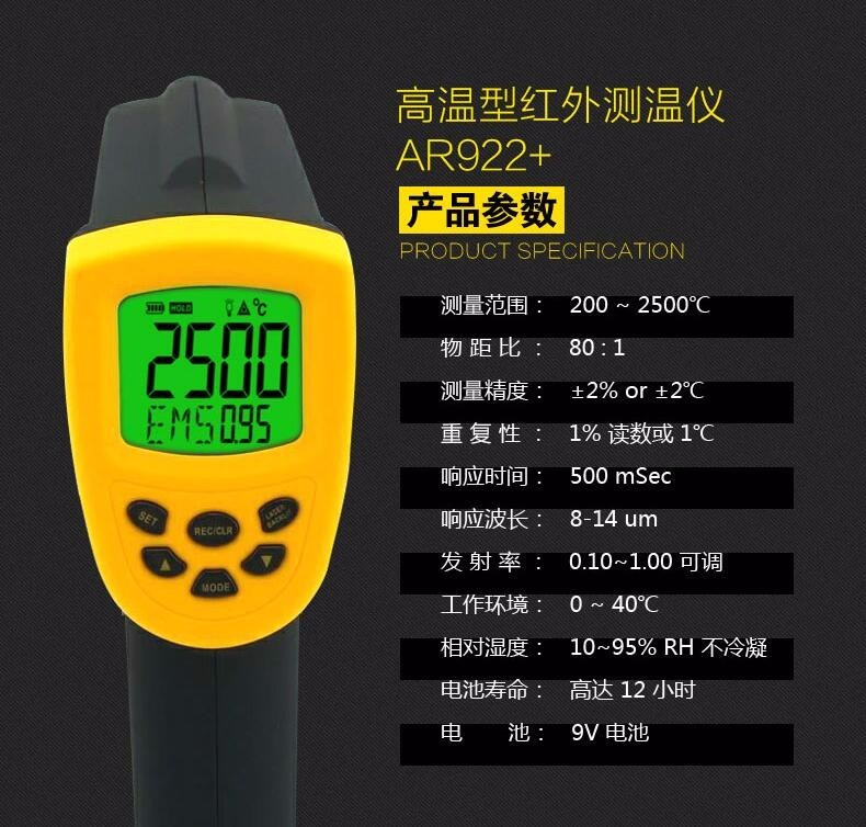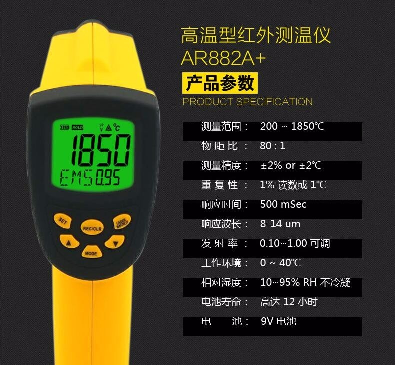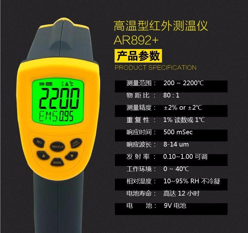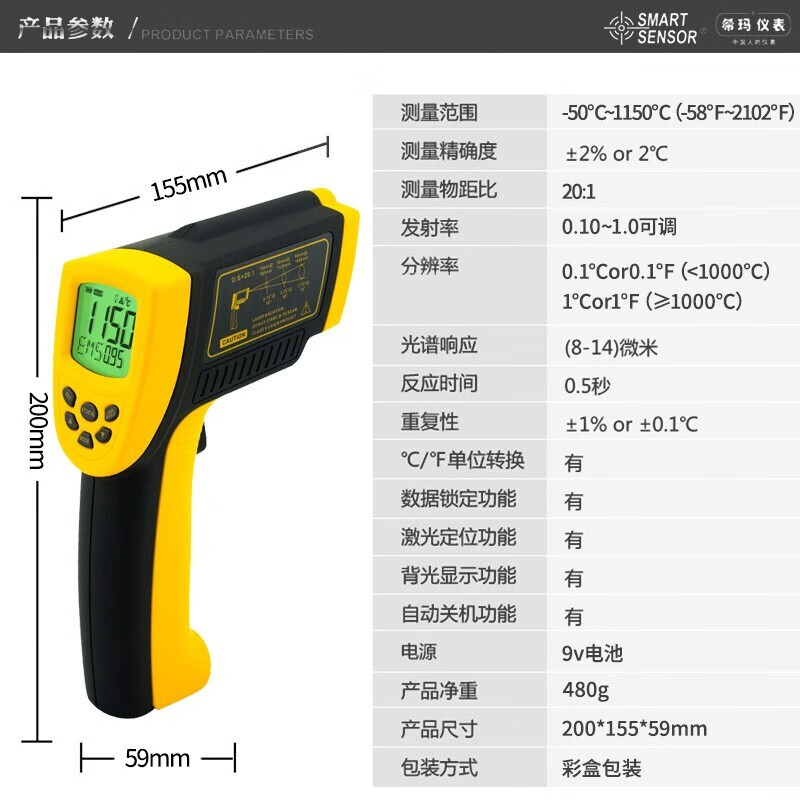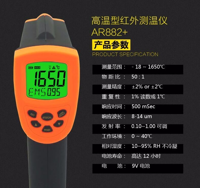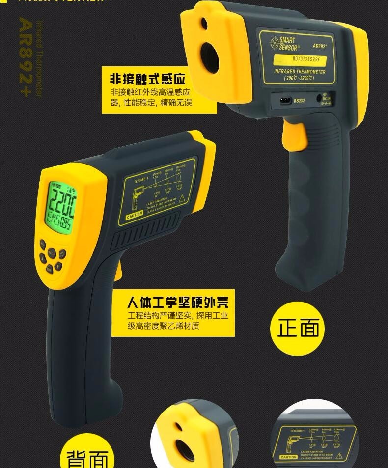 希玛 红外测温仪 高精度手持测温枪工业高温测量仪 油温家用厨房水温检测仪 AR872D+(-50℃~1150℃)