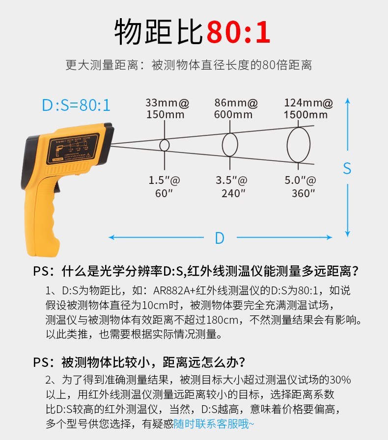 希玛 工业激光测温枪 AR882+高温红外线测温仪 冶炼铸造测温仪 非接触式点温计 AR882A+ 测温:200~1850℃