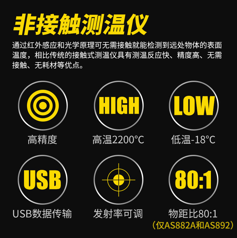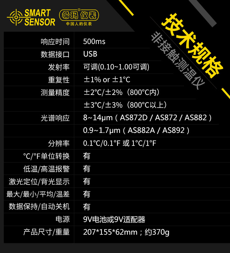 希玛AS872D 红外线测温仪 AS882A工业高精度高温冶炼铸造测温仪超高温检测仪 AS882A