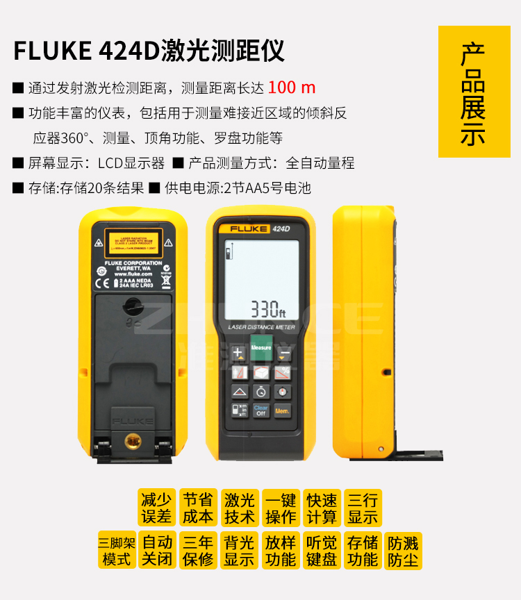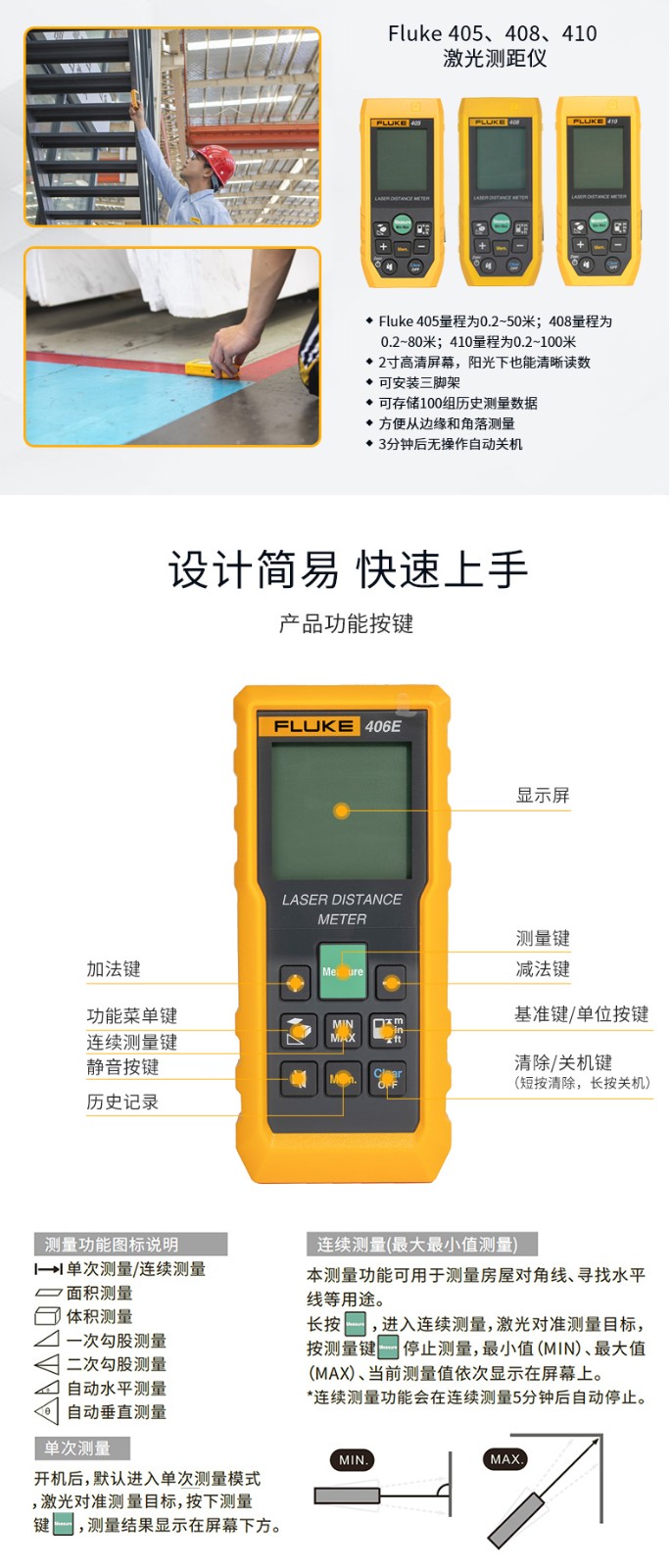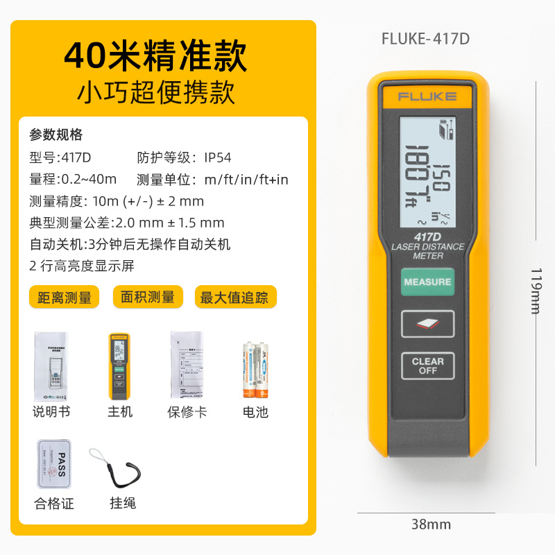 福禄克(FLUKE)手持式激光测距仪红外线量房仪高精度测量工具电子尺卷尺 FLUKE-417D