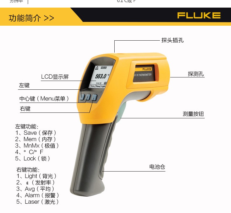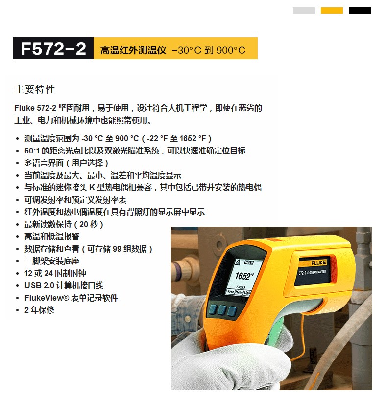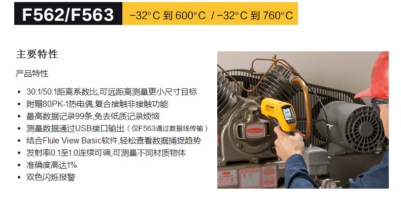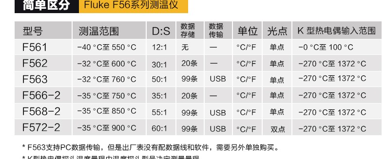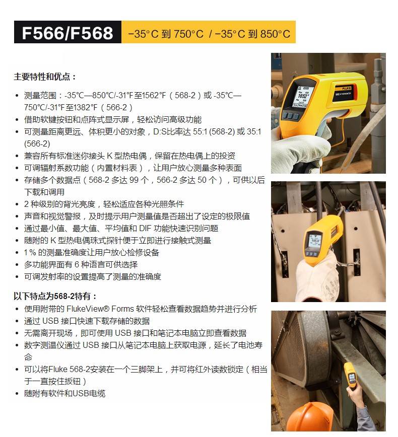 福禄克(FLUKE)测温仪F561/F562/F563/F566-2/F568-2高精度红外线测温仪 F566-2 【-35~750°C】