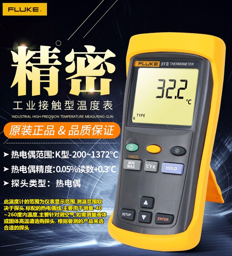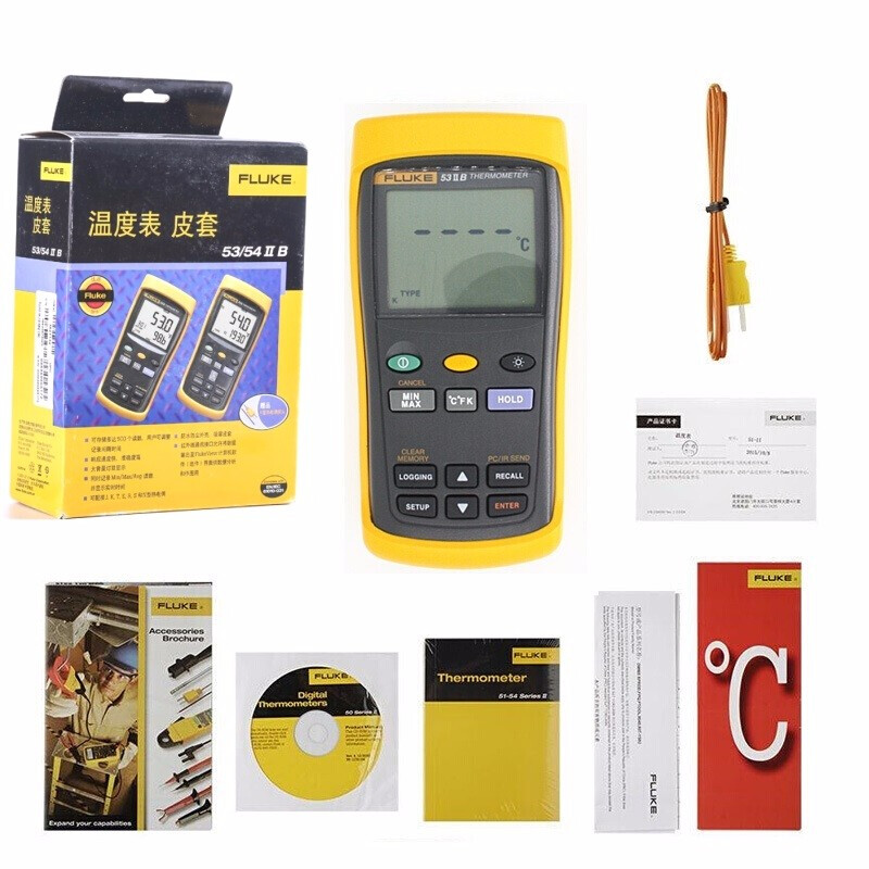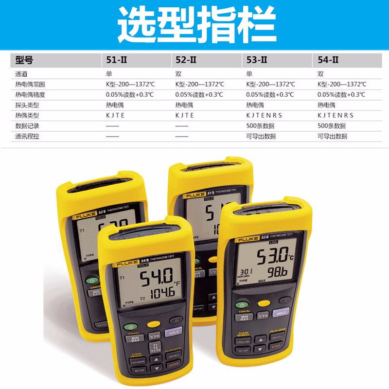 美国福禄克FLUKE-51II系列高精度接触型测温仪 数显温度计K型探头 F53-2B单通道带记录温度计