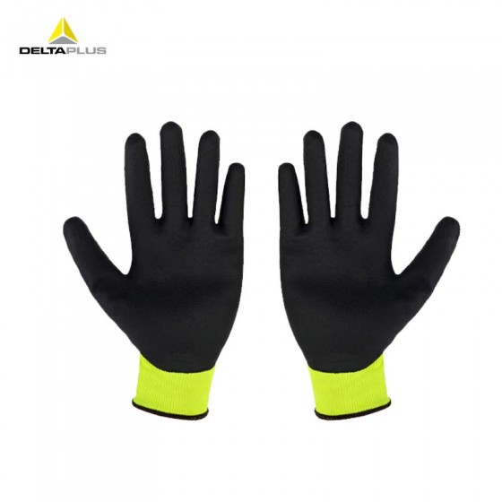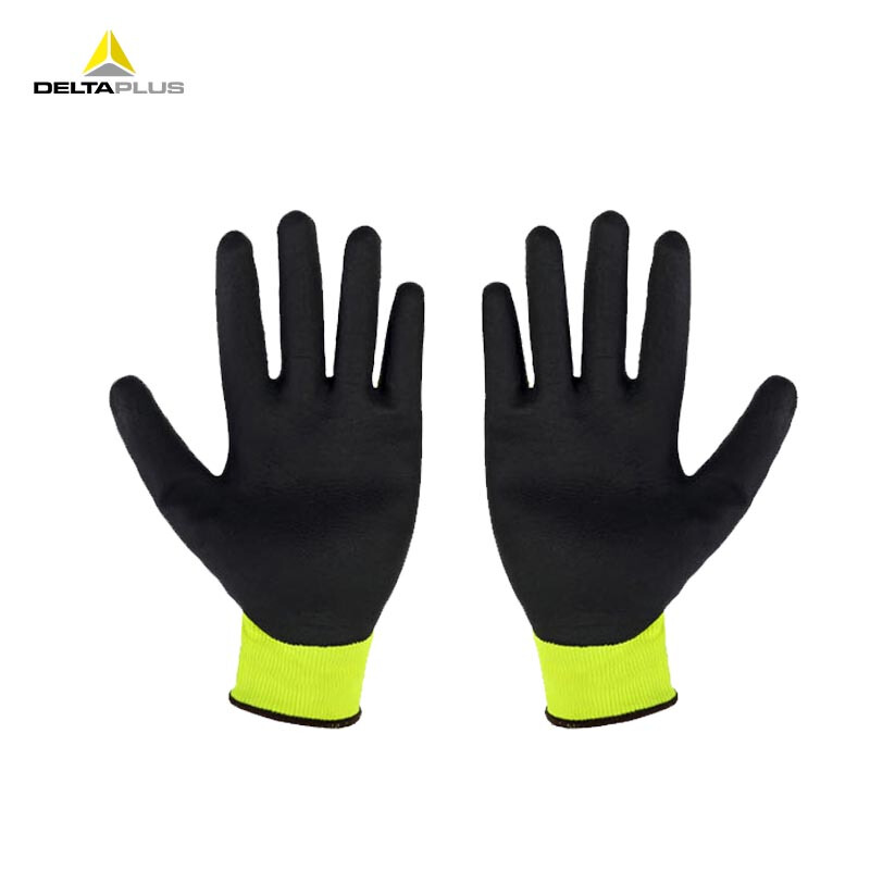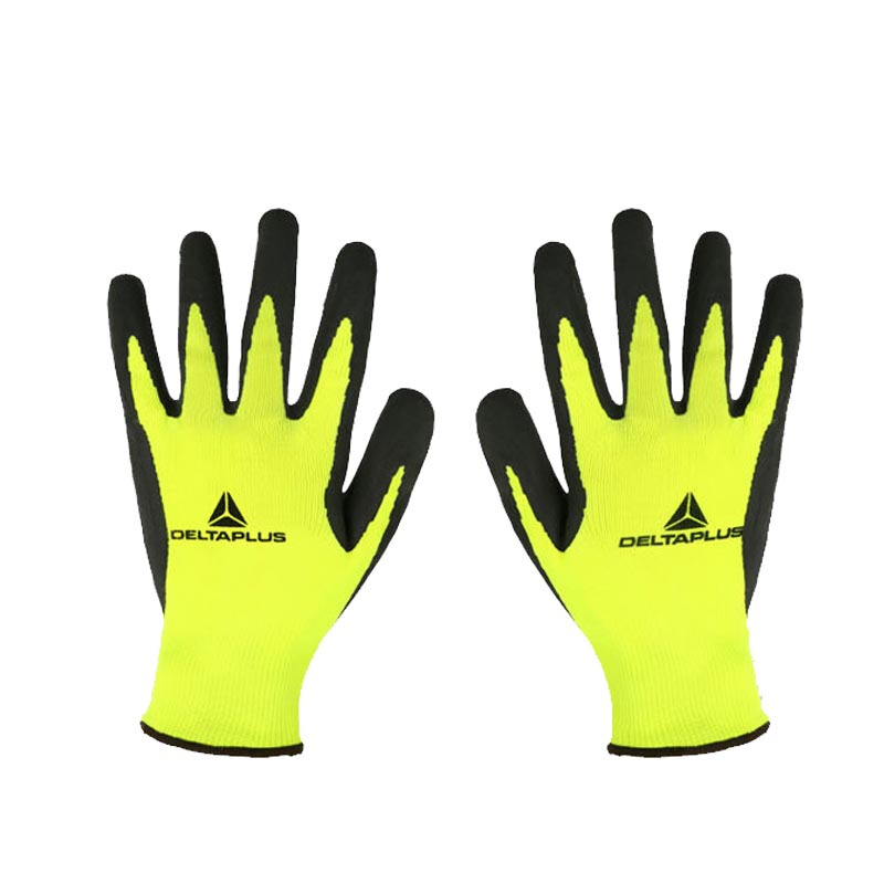 代尔塔 工作荧光劳保手套 乳胶涂层耐磨抗撕裂强 透气 棉纱针织 201733 1双
