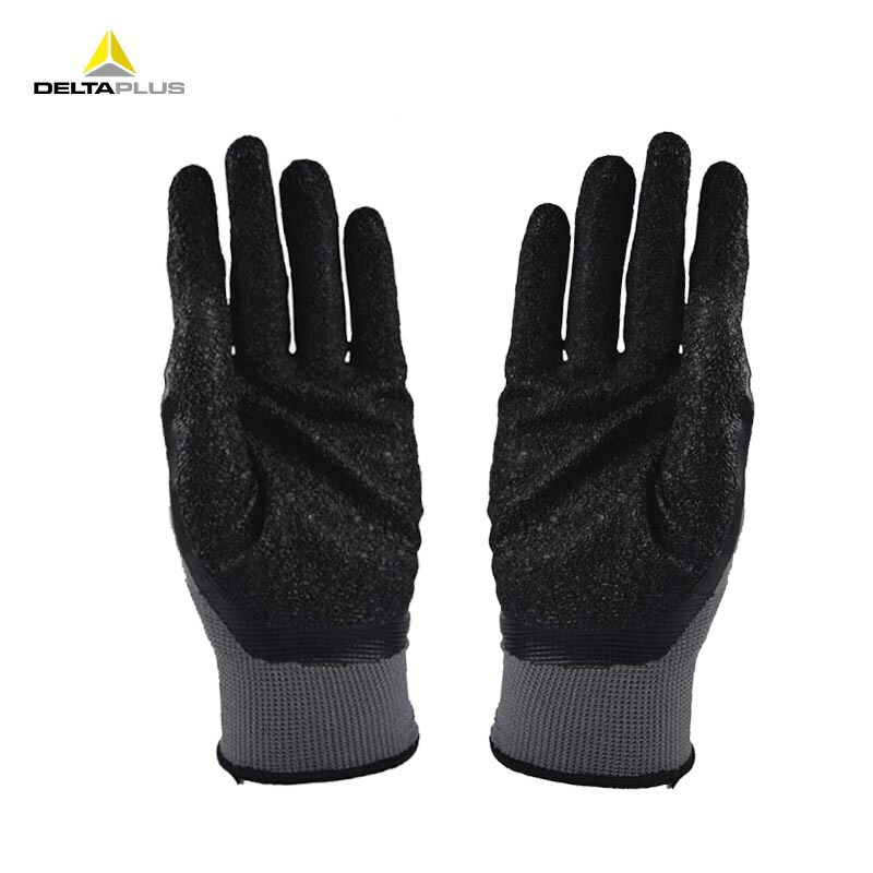 代尔塔 乳胶涂层手套 涤纶防滑 透气 弹性 抓握性强 耐磨抗撕裂 201630 黑色