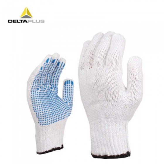 代尔塔 PVC点胶 涤棉 线手套 工作 劳保手套 防滑耐磨损抗撕裂 208006 白色/蓝色9# 1副