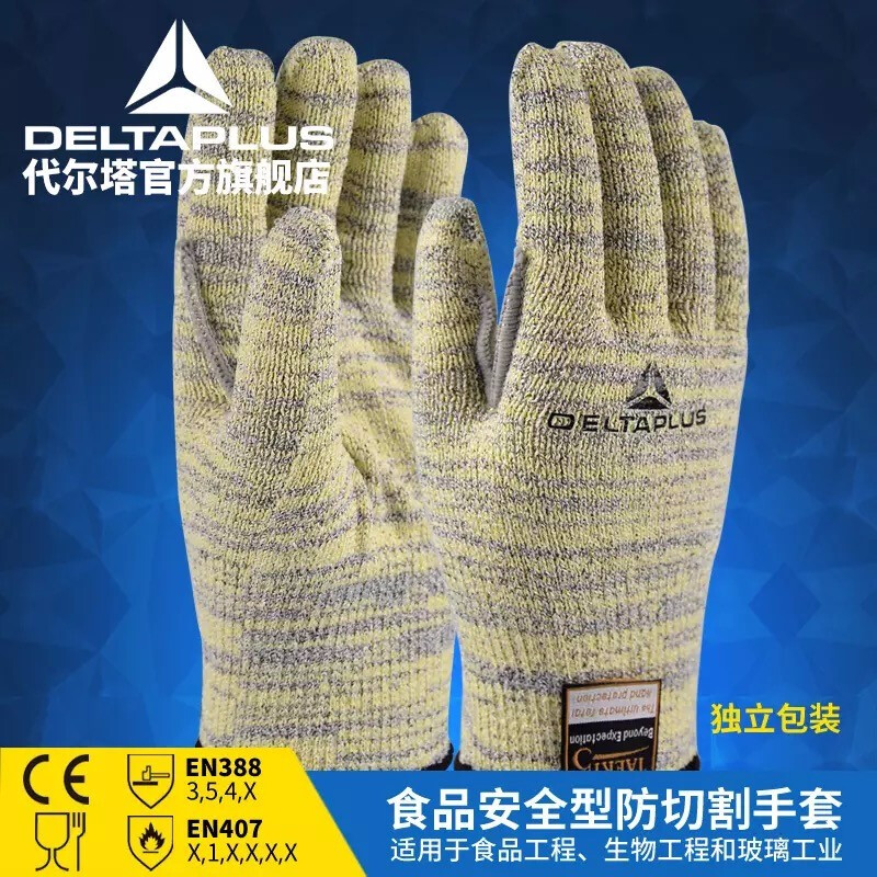 代尔塔 工作劳保手套 餐饮工厂 耐高温100度 耐磨防切割 拇指加强 米黄色