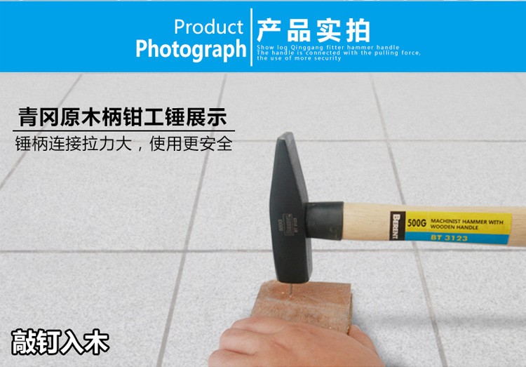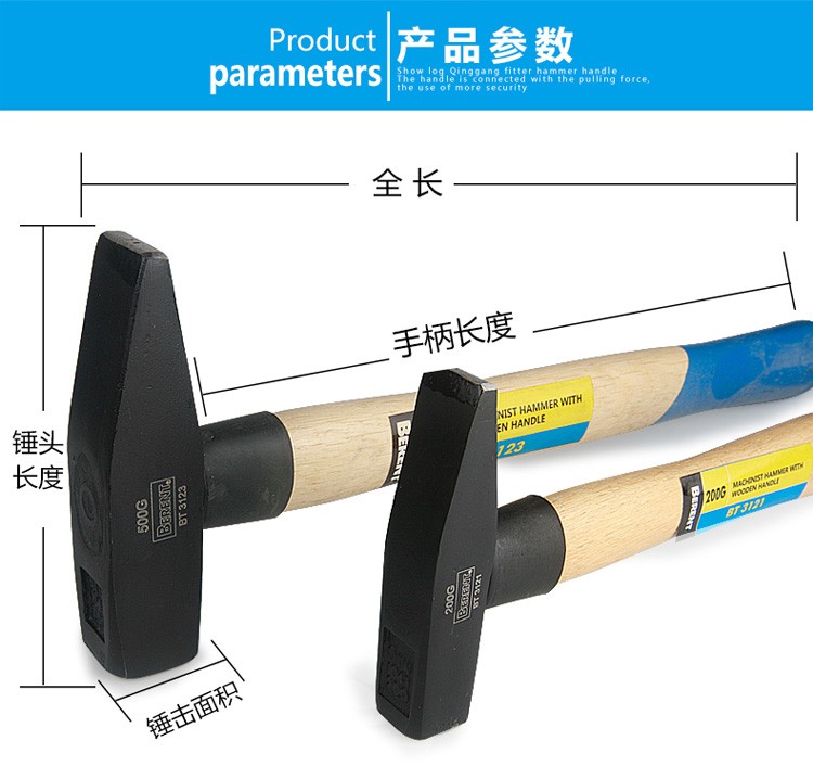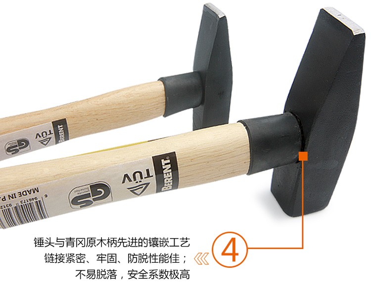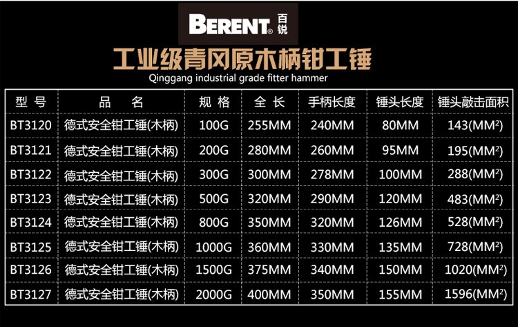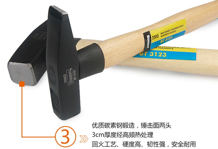 百锐 BERENT 钳工锤 BT3120 德式安全钳工锤(木柄)100G