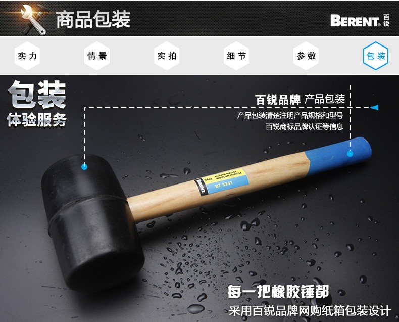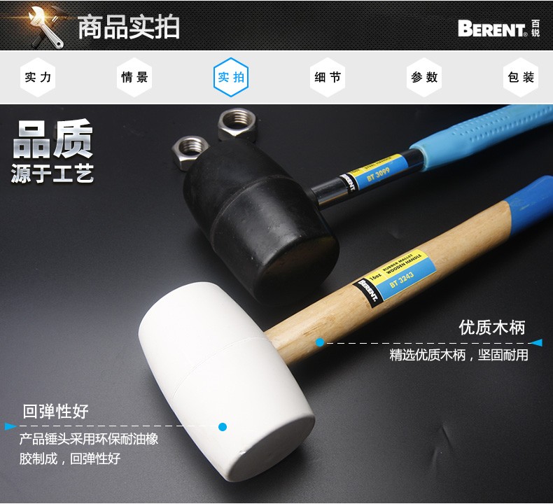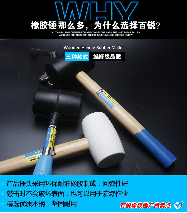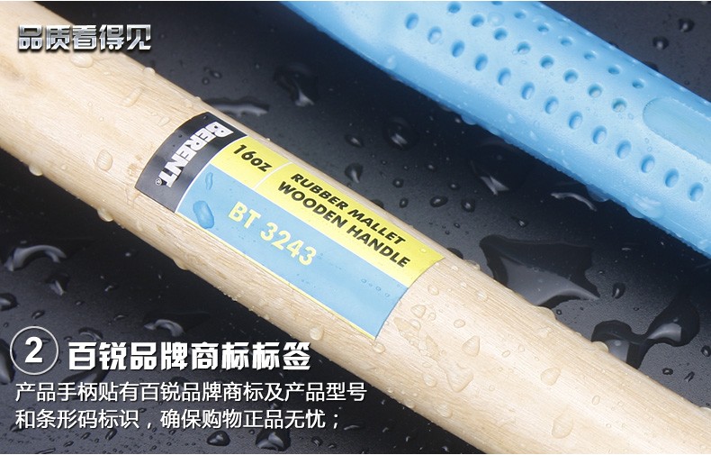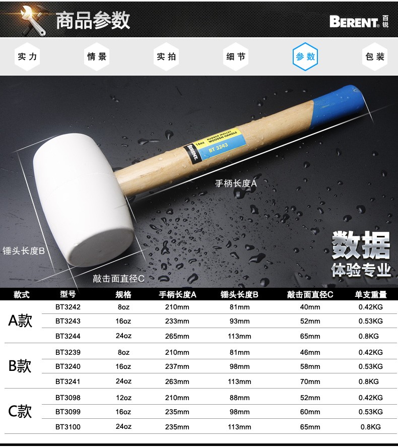 百锐 BERENT橡胶锤子 橡皮锤 BT3098 钢管柄橡胶锤12OZ