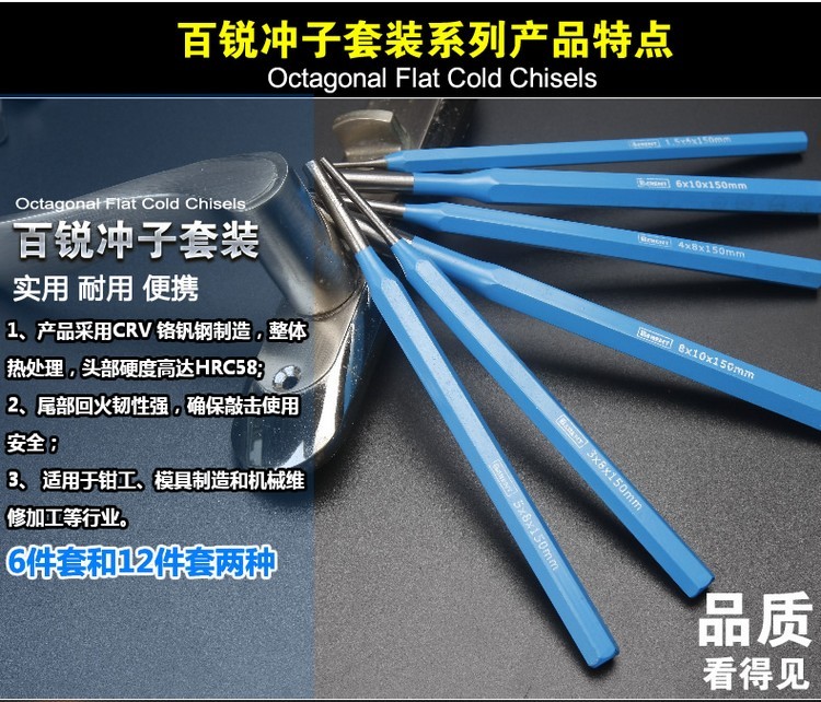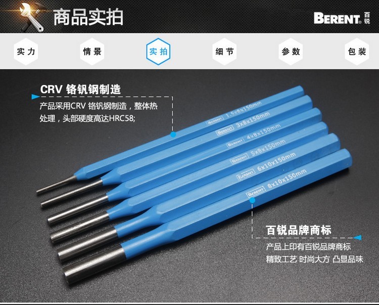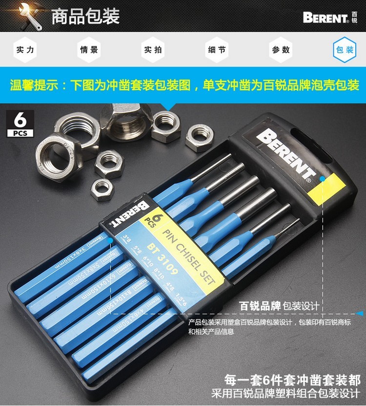 百锐 BERENT 五金工具 BT3109 6件套圆柱冲