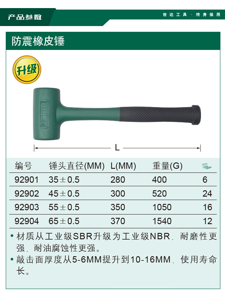 世达(SATA)防震橡皮锤45mm 钢管柄橡皮锤子橡胶锤子榔头安装胶锤 92902 现货