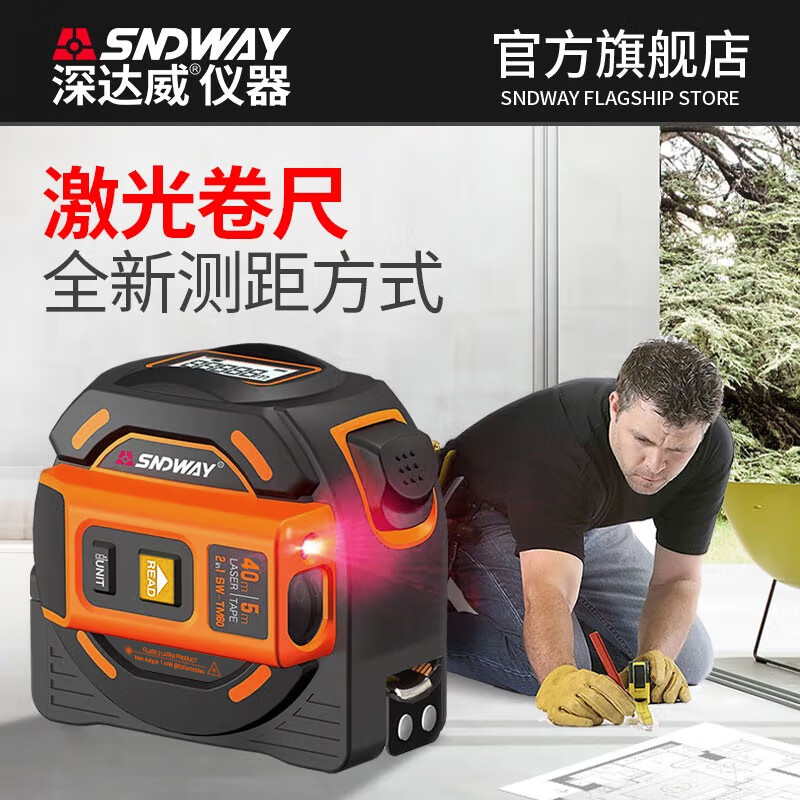 深达威40米自锁激光测距激光测距仪数显钢卷尺量房仪木工尺子 SW-TM40