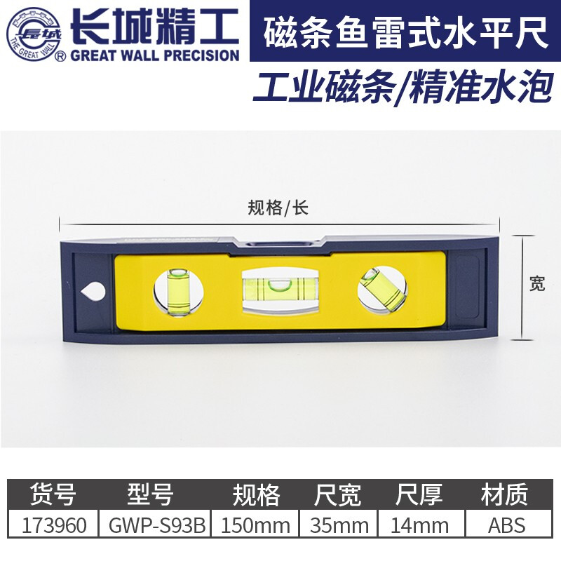 长城精工水平尺小型便携式迷你实心防摔高精度家用平水尺 150mm 173960