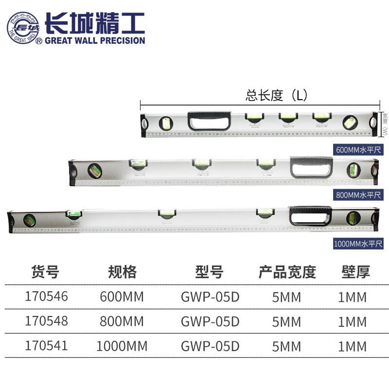 长城精工水平尺高精度贴瓷砖工具防摔平水尺 05D多功位大水泡 600mm 170546