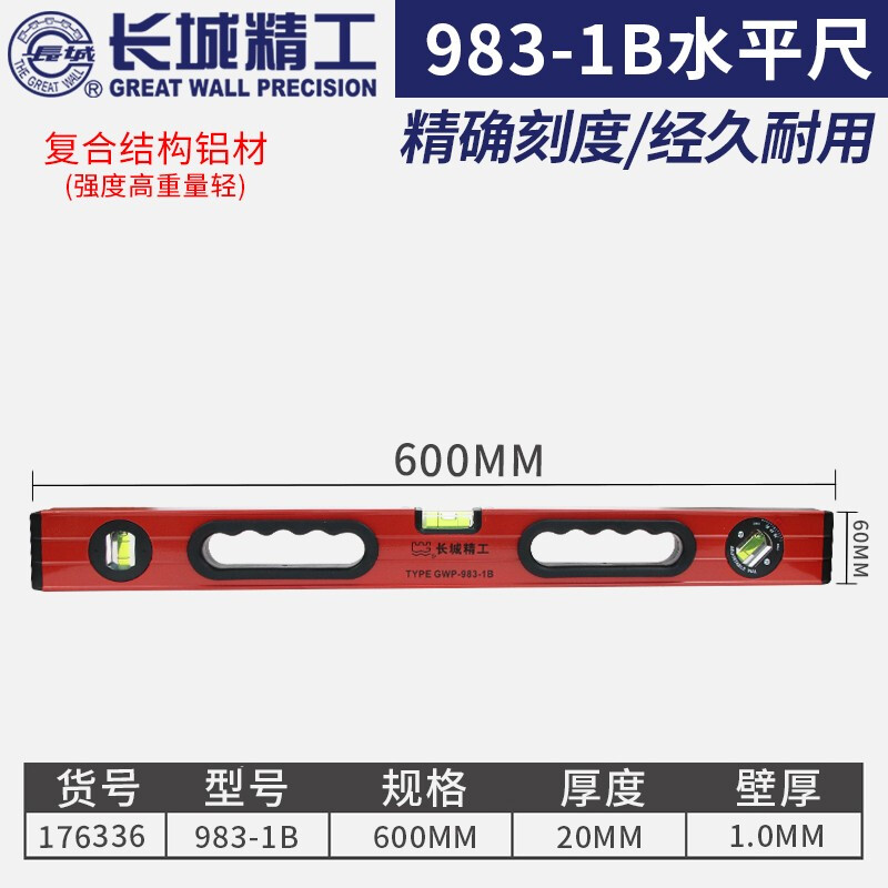 长城精工水平尺防摔铝合金高精度工业级983-1B大水泡平水尺靠尺 600mm 176336