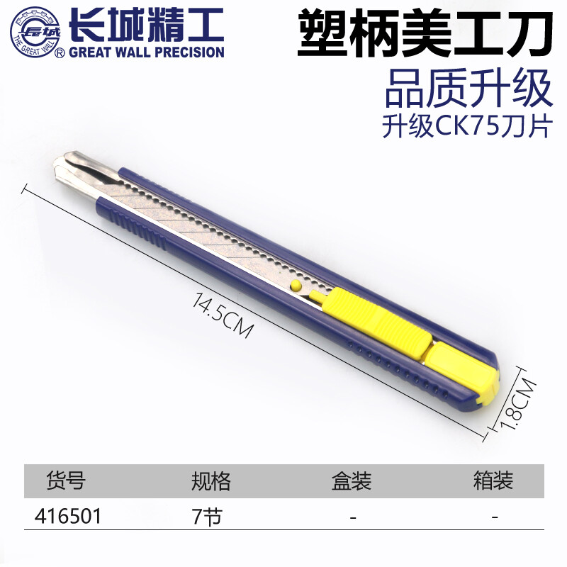 长城精工 9mm塑柄美工刀 开箱刀 CK75刀片 416501