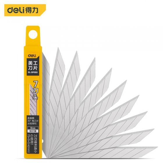 得力(deli) 7刀头美工刀片/裁纸刀片 10片30°角银刃9mm DL-DP093