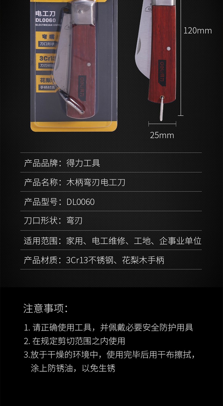 得力(deli) 原木手柄锰钢电工刀 原木直刃电工刀 DL0070