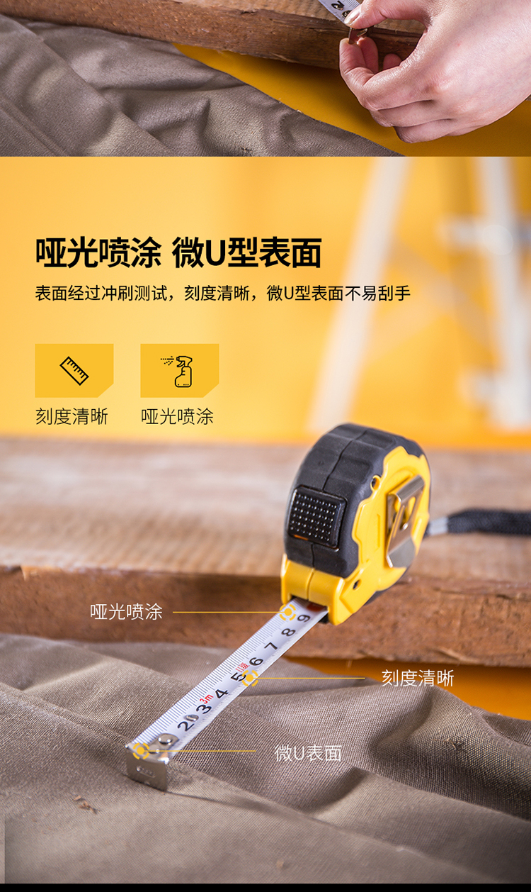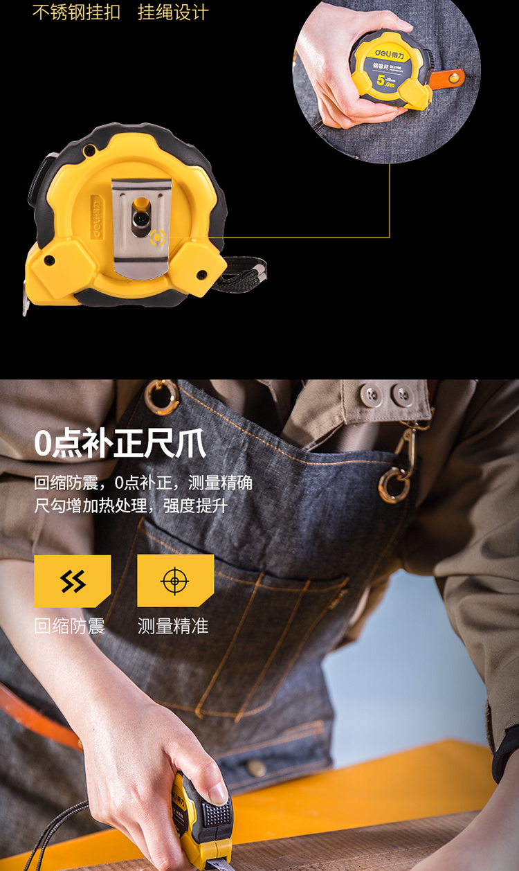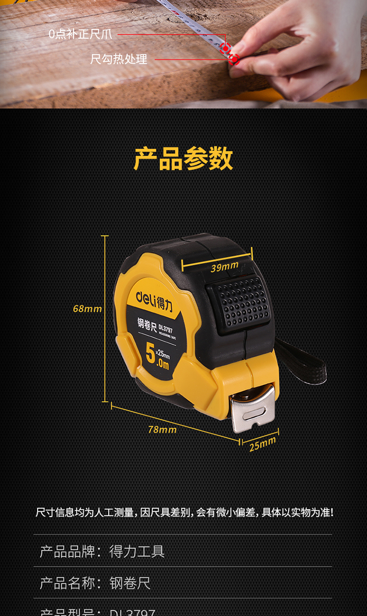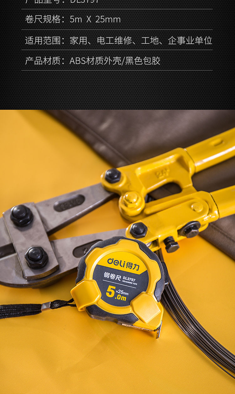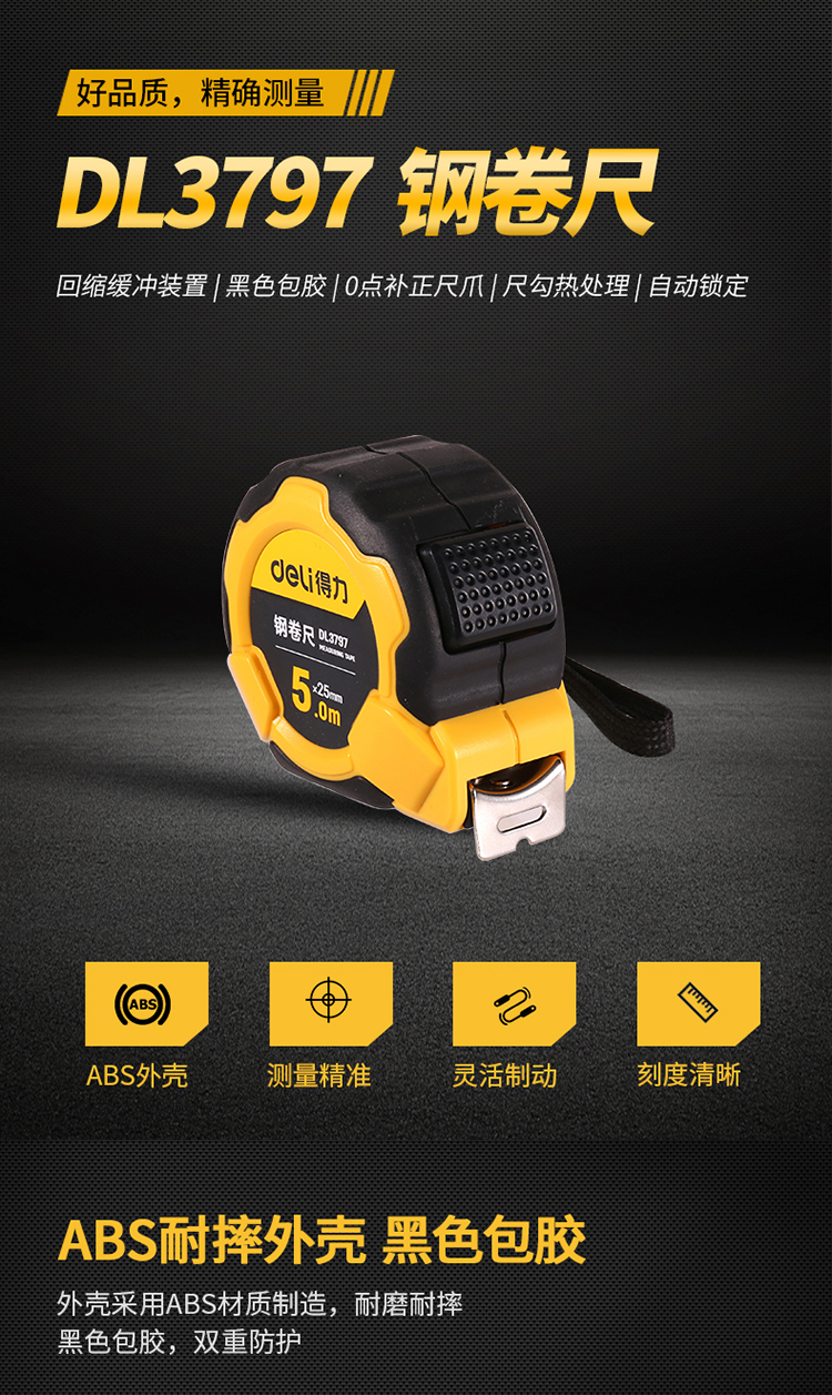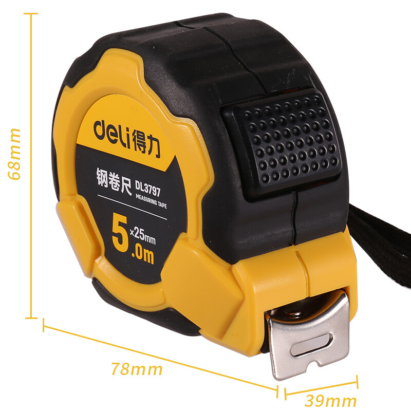 得力(deli) 5米包胶自锁钢卷尺盒尺伸缩尺米尺公制5m*25mm DL3797