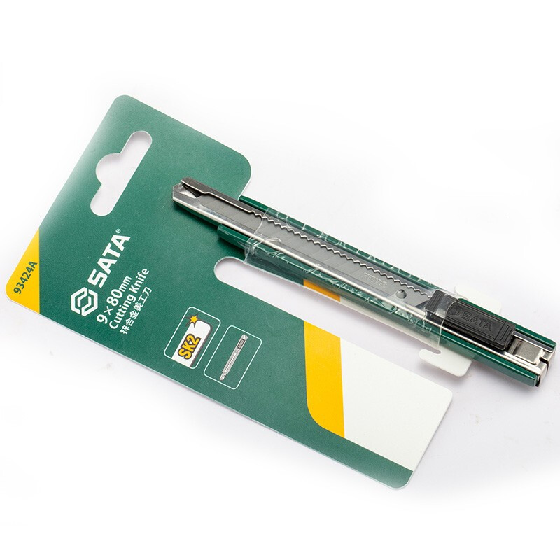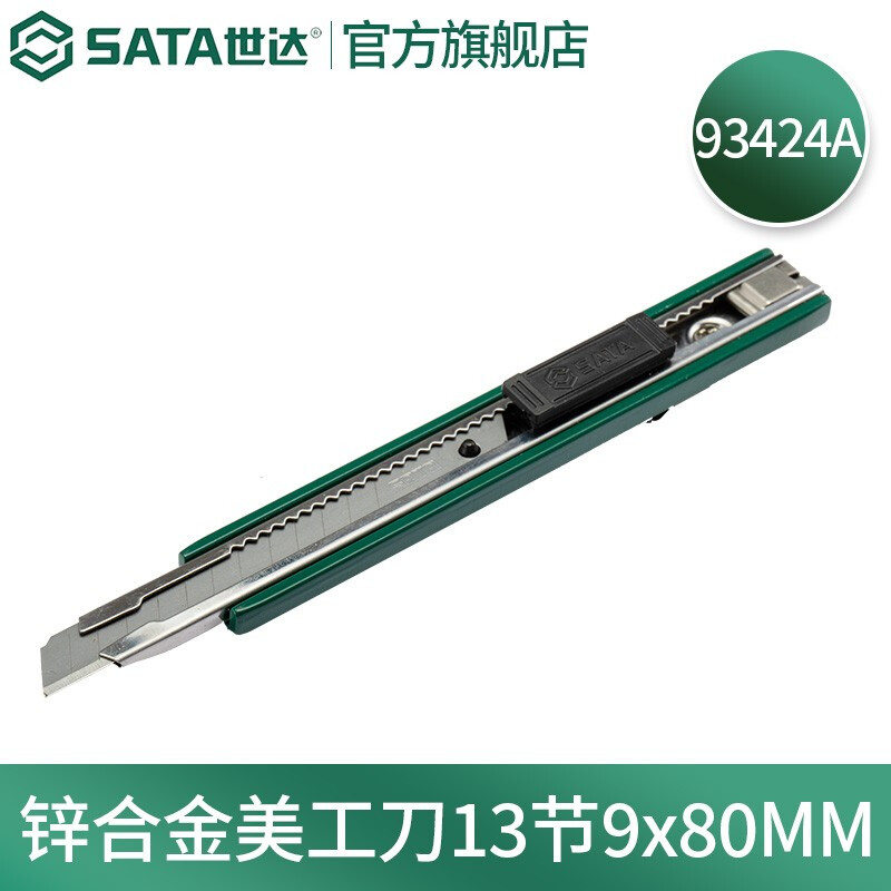 世达(SATA) 93424A 9mm锌合金美工刀壁纸刀安全开箱刀裁纸刀金属柄推钮刀架 锌合金美工刀13节9x80MM 93424A