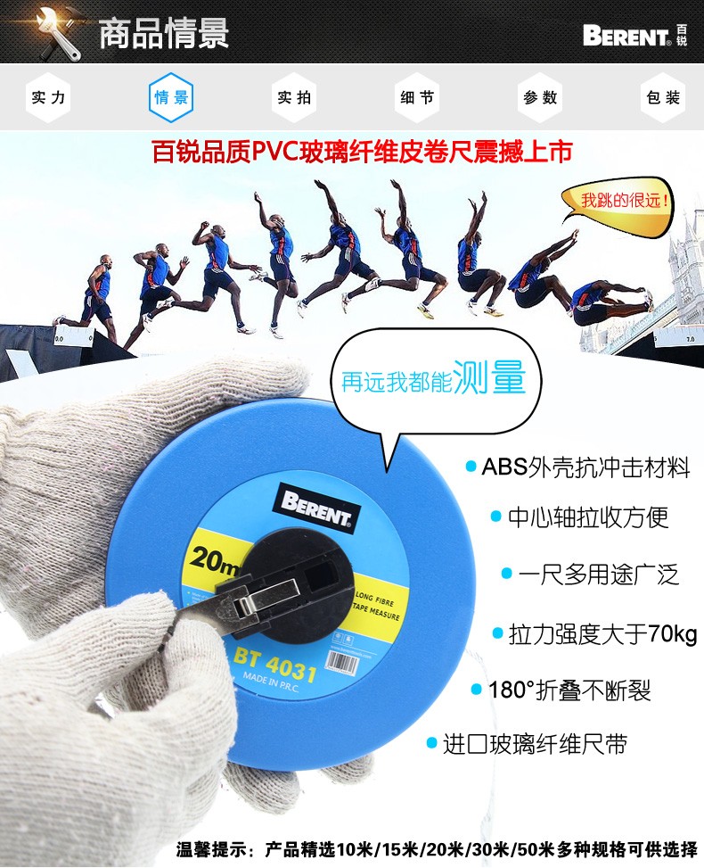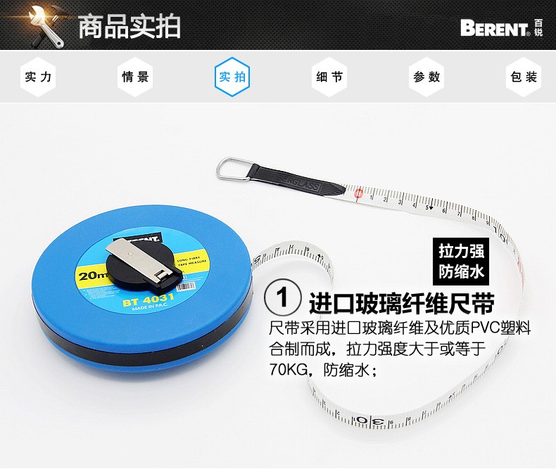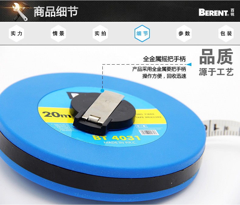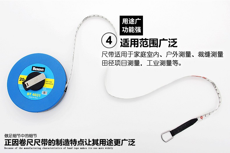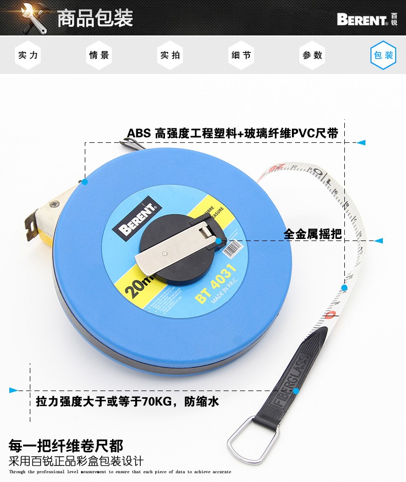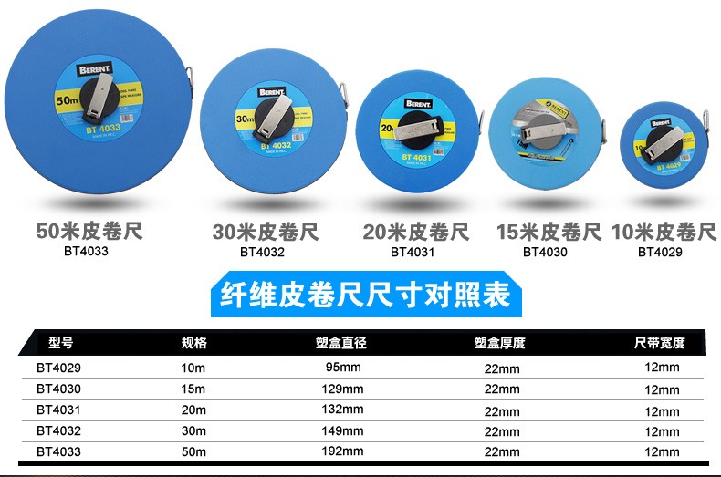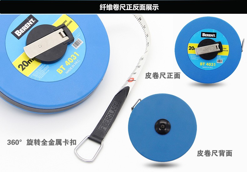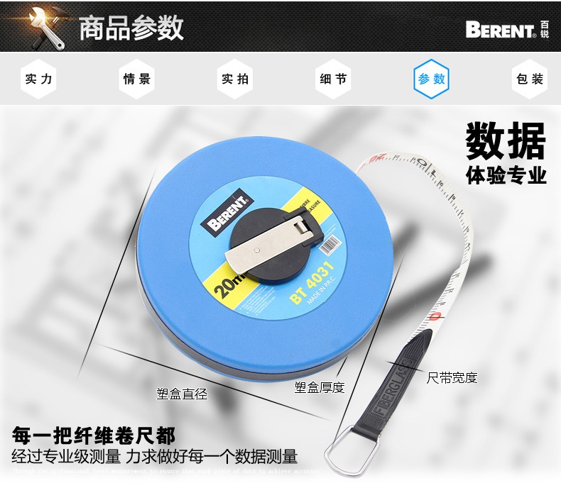 百锐 BERENT纤维皮卷尺 建筑工程测量尺 BT4029 10米