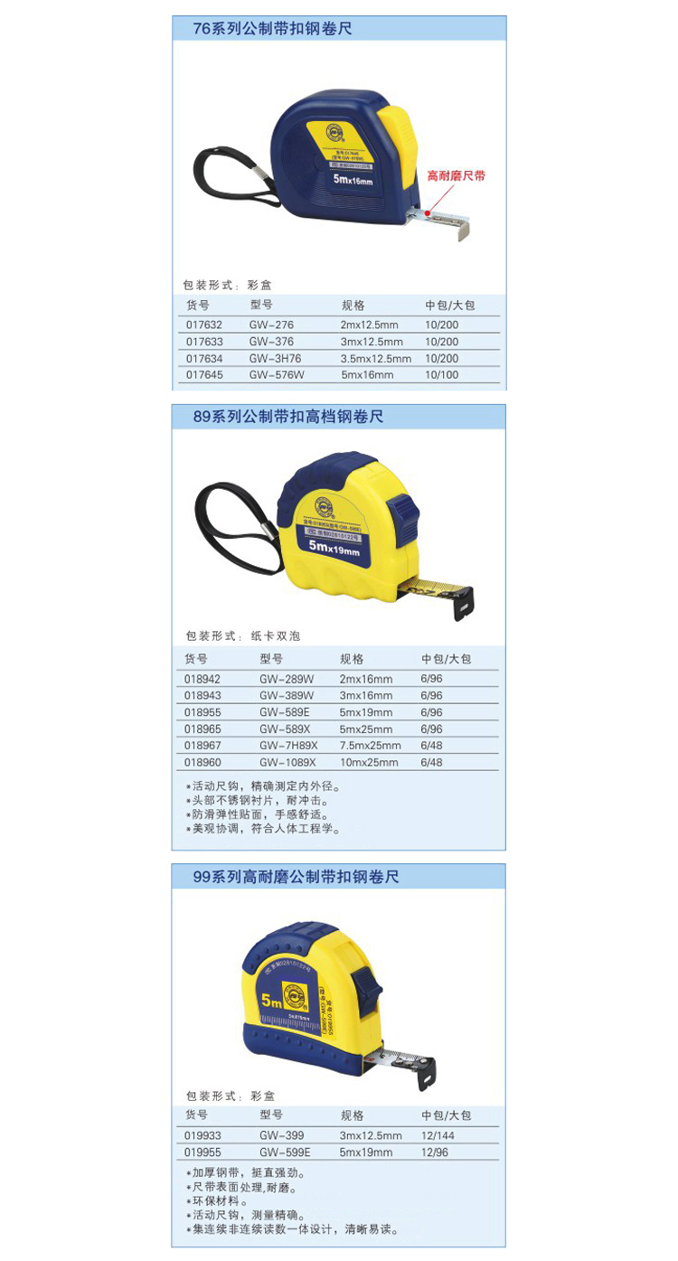 长城(thegreatwall)测量工具 钢卷尺带扣公制盒尺 76系列2mX12.5mm 017632