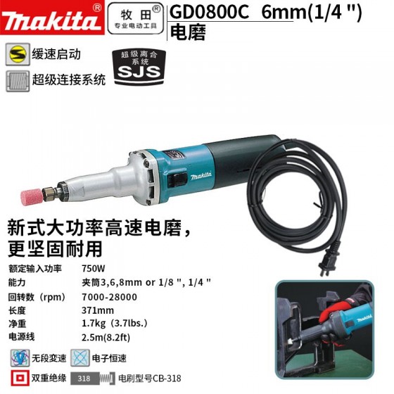 牧田/MAKITA/GD0800C电磨直磨机内磨机多功能 8mm