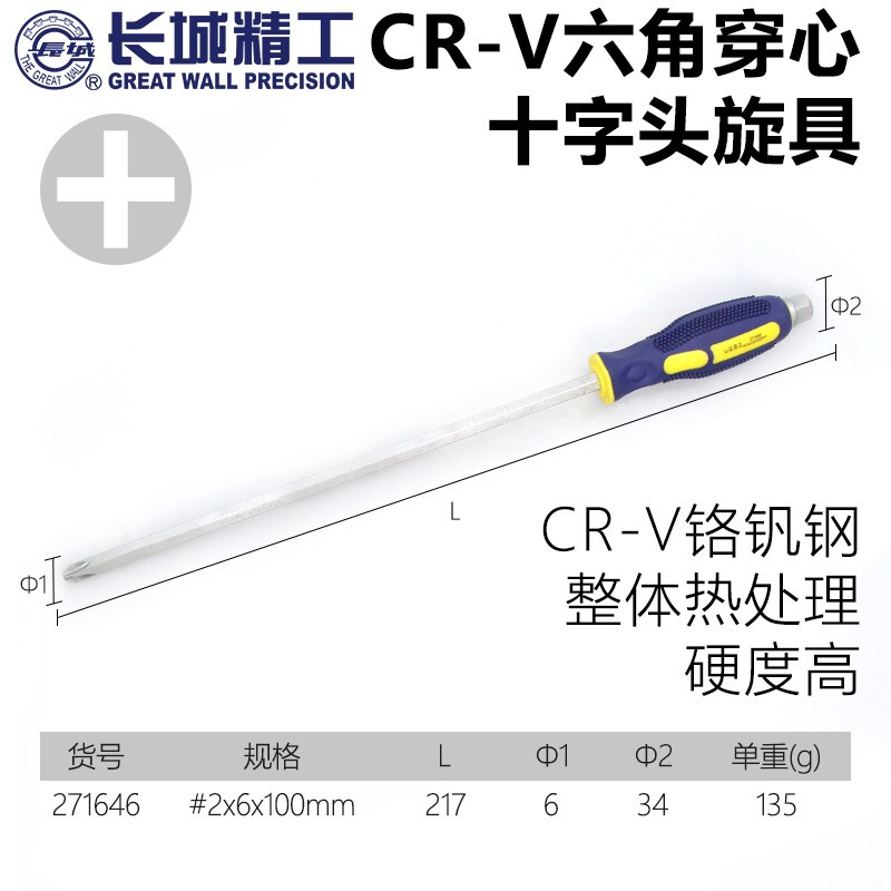 长城精工十字螺丝刀 Cr-v六角穿心十字头旋具 敲击螺丝批 6*100mm 271646