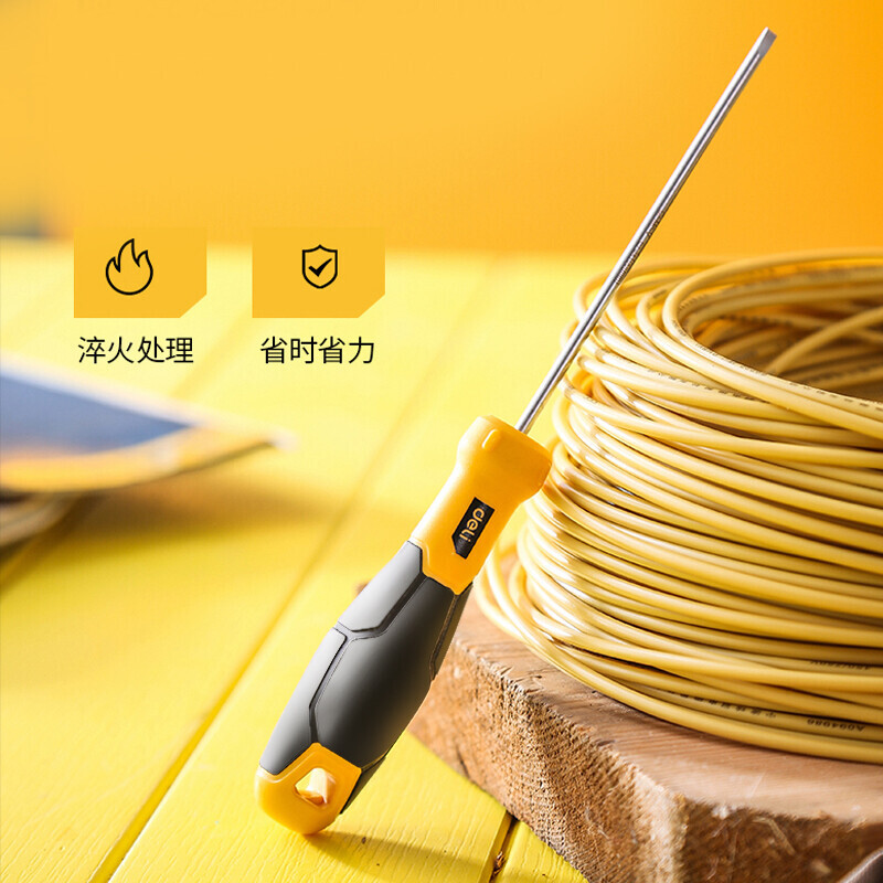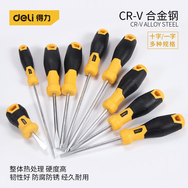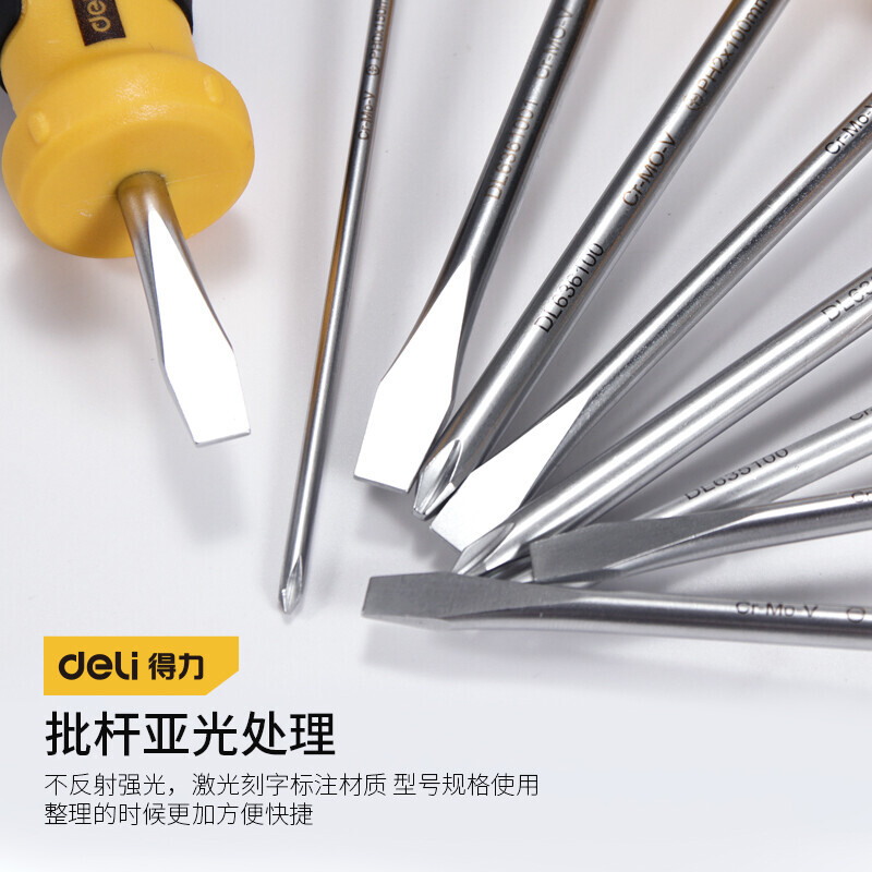 得力(deli)螺丝刀 工业级梅花十字精密螺丝批套装小号一字平口起子改锥 十字(5x75mm) DL635075