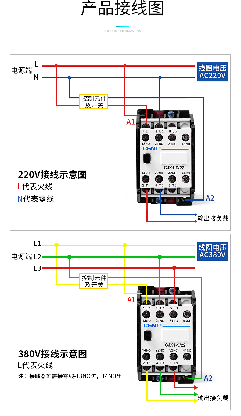 正泰交流接触器单相三相 cjx1-140/22 380v