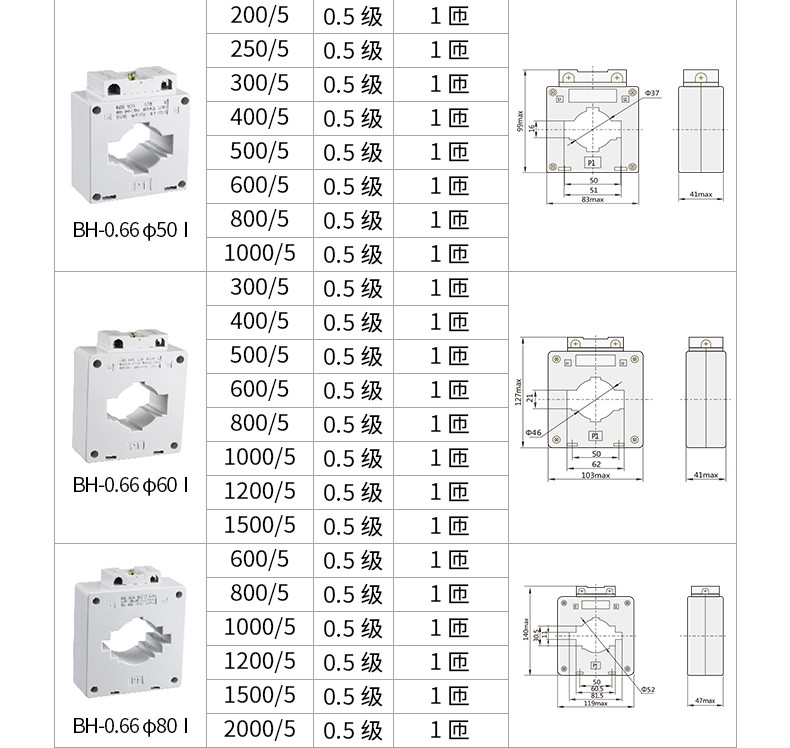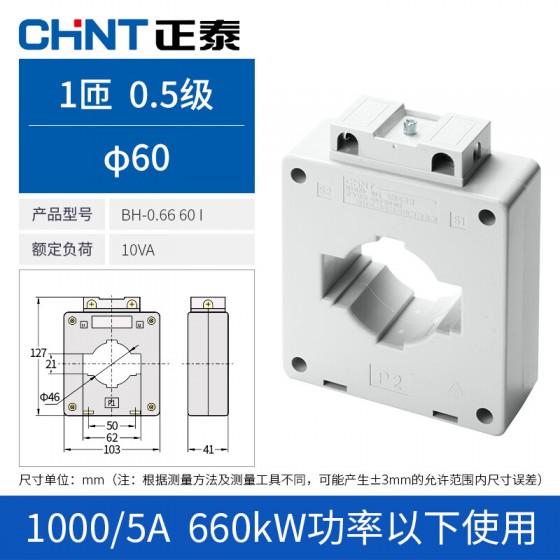 正泰(CHNT) 电流互感器BH0.66 30I 电流比 电流互感器 穿心匝数1匝 电流比 1000/5 φ60 0.5级