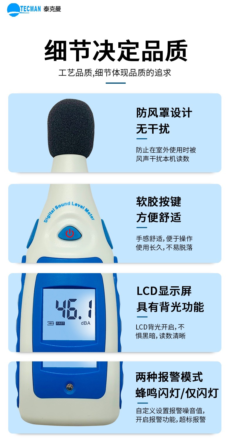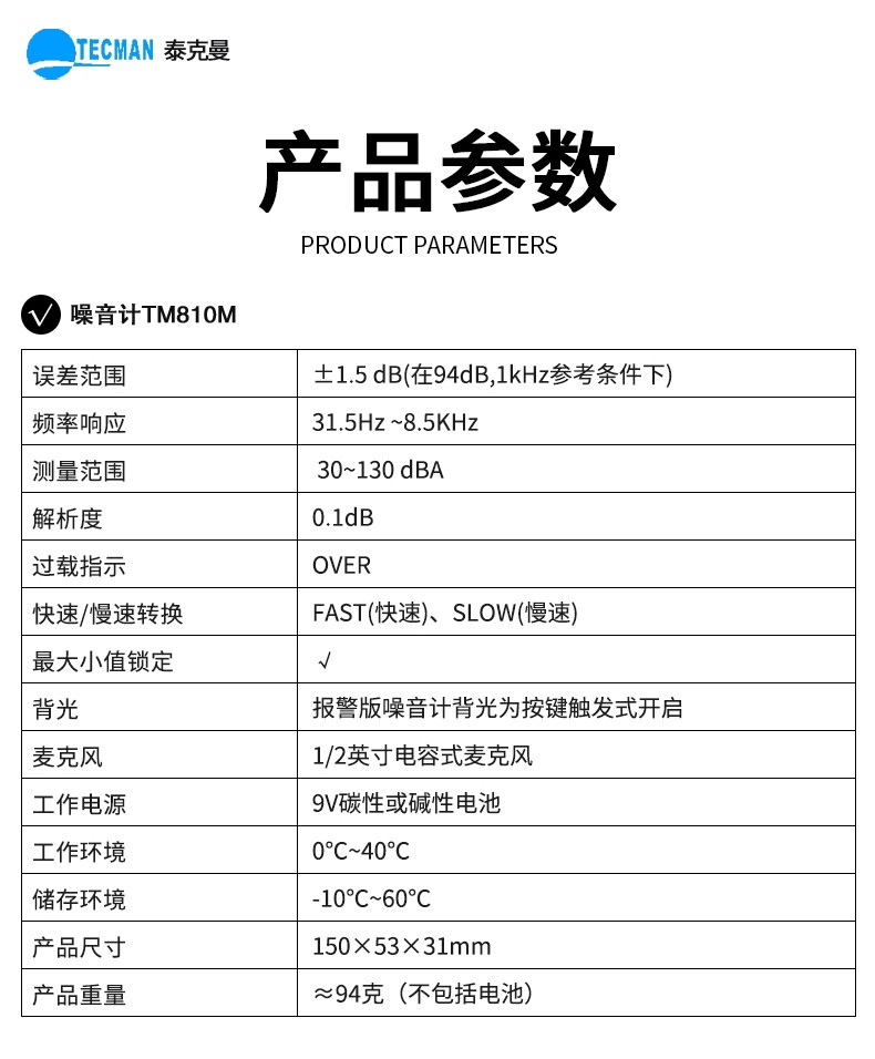 泰克曼TM810M数字噪音计报警声音测量仪表