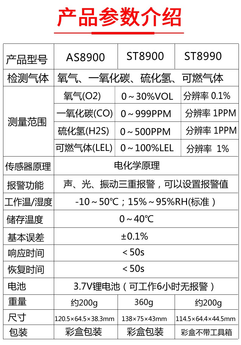希玛AS8900四合一气体检测仪有毒有害气体检测仪防爆型气体报警器 AS8900标配