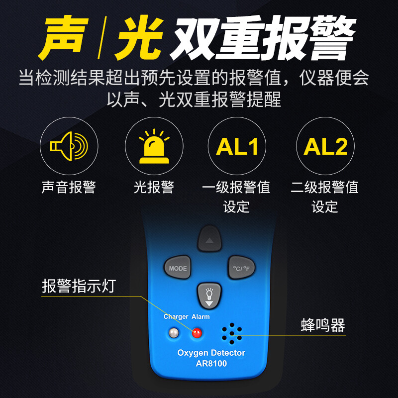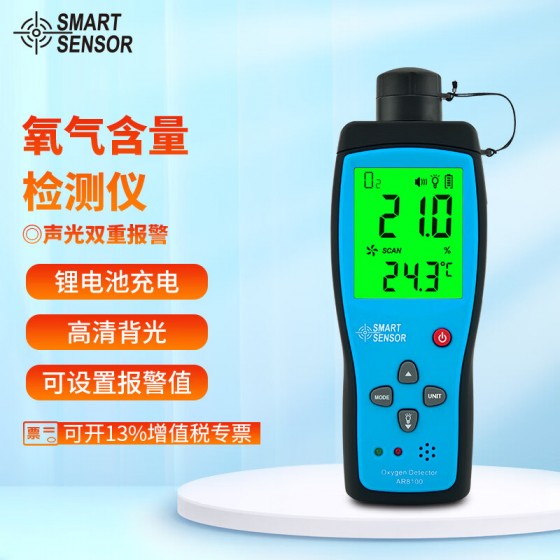 希玛 AR8100 氧气检测仪O2气体浓度测漏检测试仪手持式空气含氧量测试仪测氧仪声光报警器
