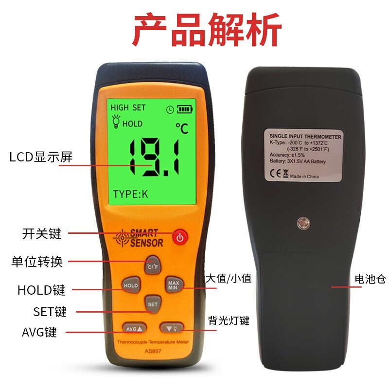 希玛 AS857 热电偶测温仪单通道接触热电偶温度计
