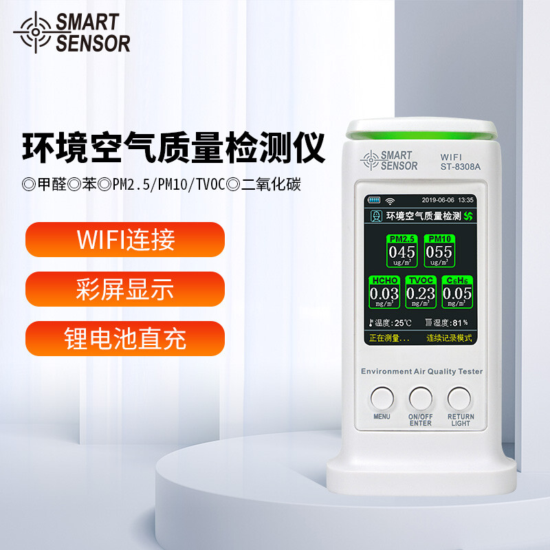 希玛 ST8308A甲醛检测仪 家用TVOC空气质量测试仪器pm2.5粉尘颗粒雾霾温湿度时间表